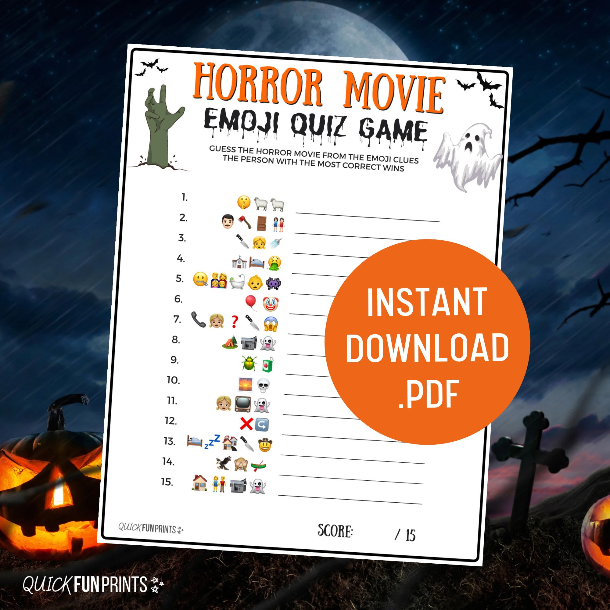 Horror Movie Emoji Pictionary Party Game, Scary Movie Emoji Game, Halloween Emoji Pictionary Game