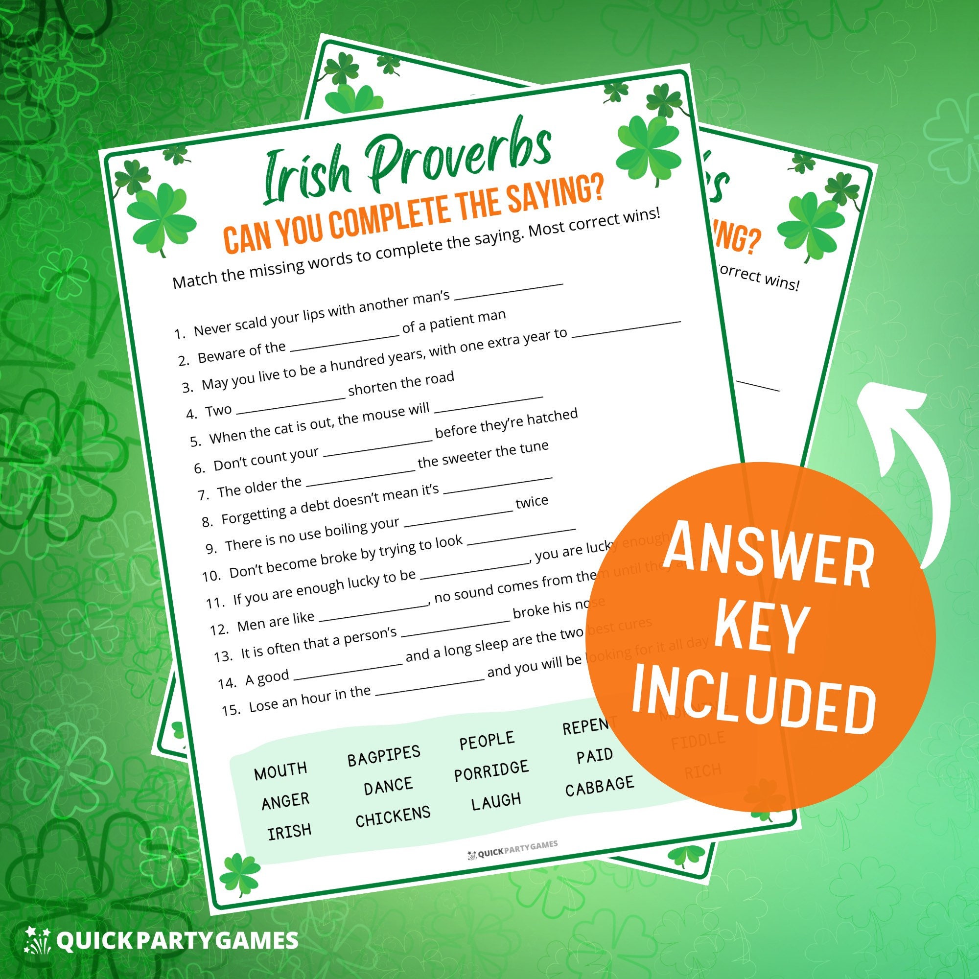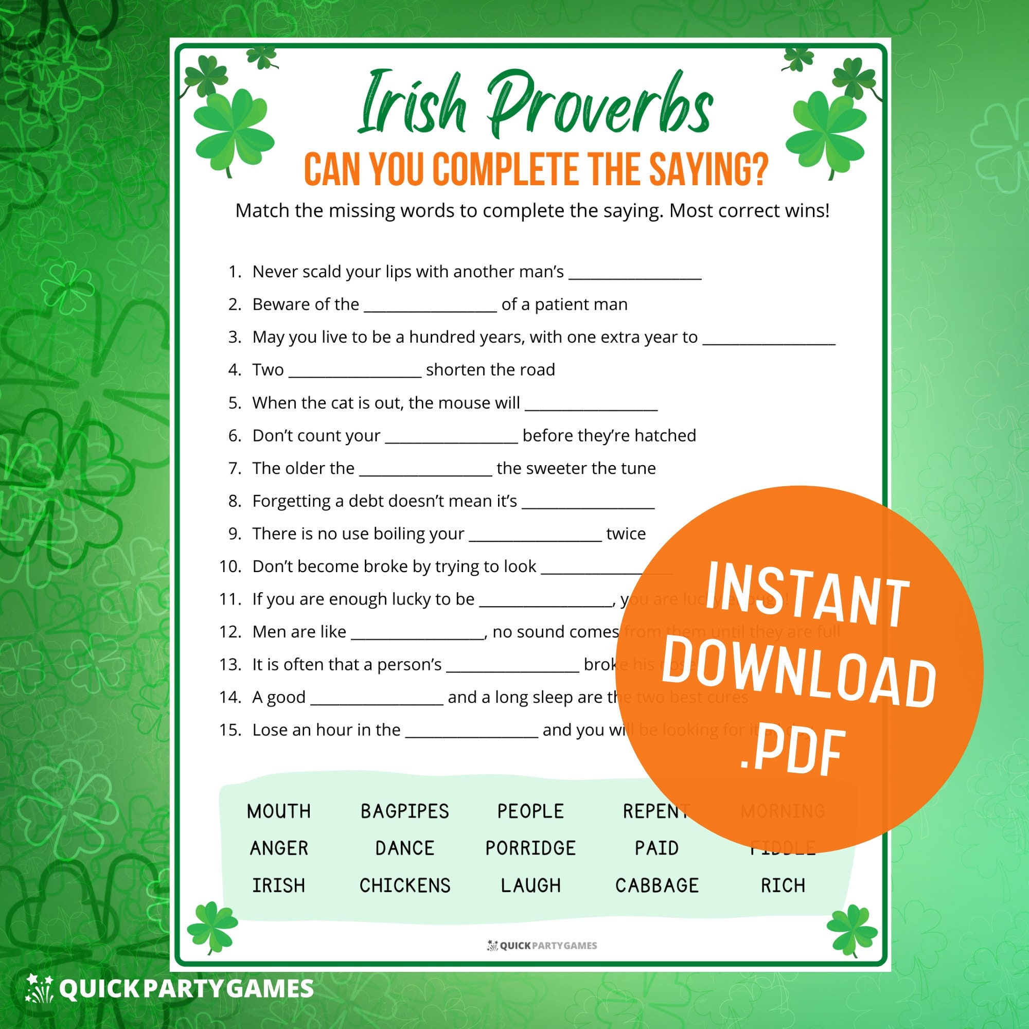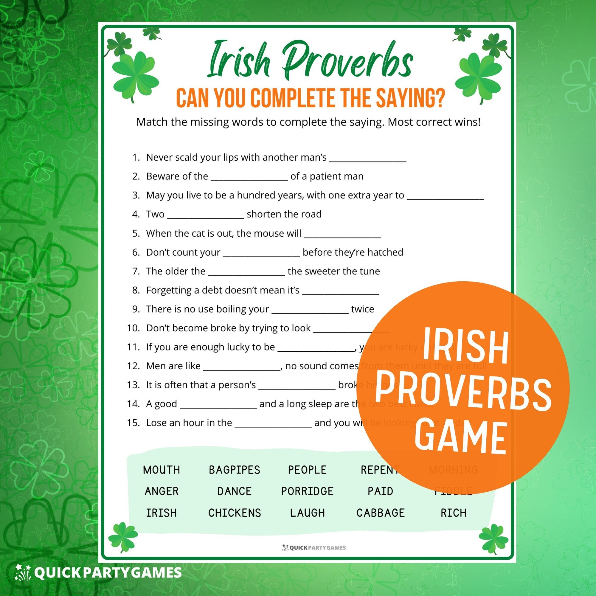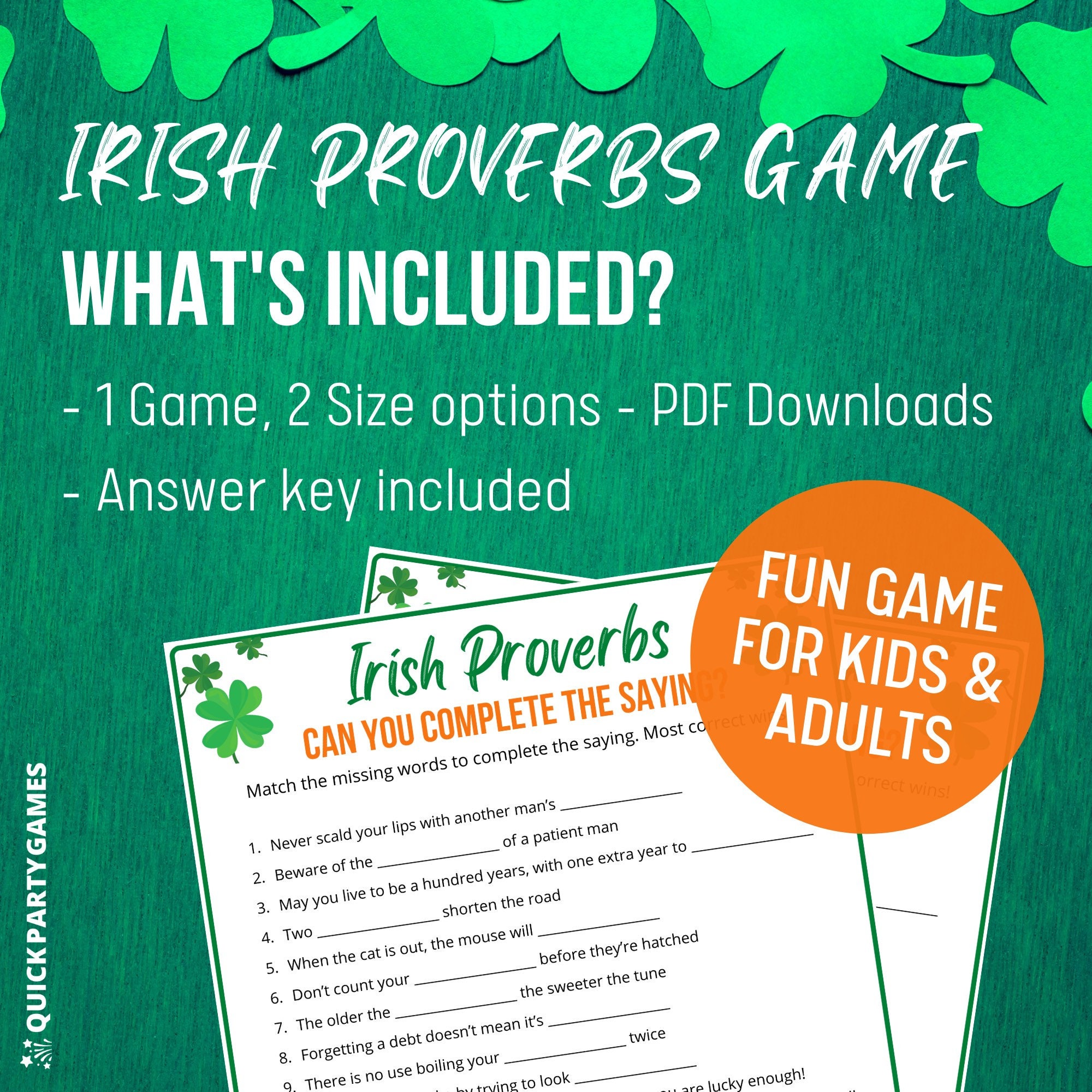 St Patrick's Day Trivia Game | Irish Proverbs Game | Fun St Paddy’s Day Game | St. Patty’s | St. Pats party games | Family games for kids and adults | Printable St. Patrick’s Game