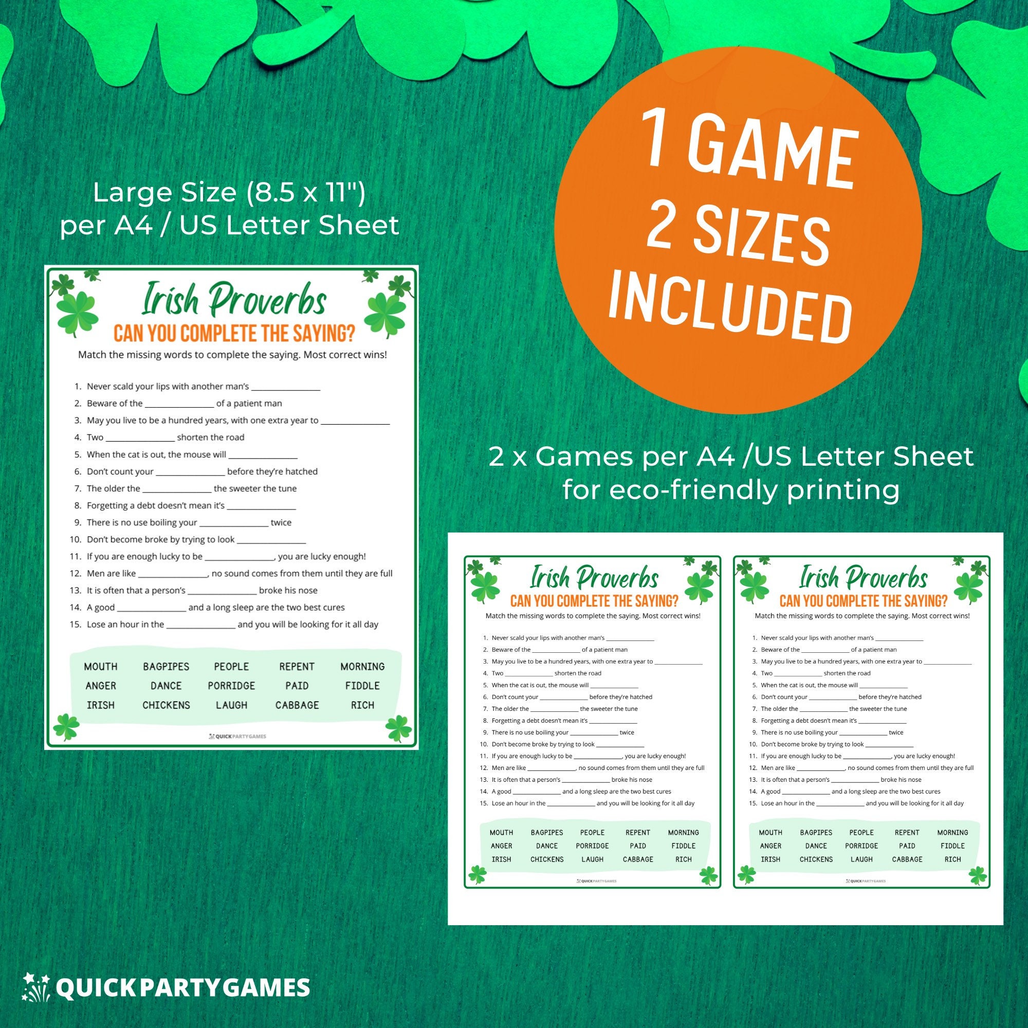 - St Patrick's Day - Irish Proverbs Game 2 sizes