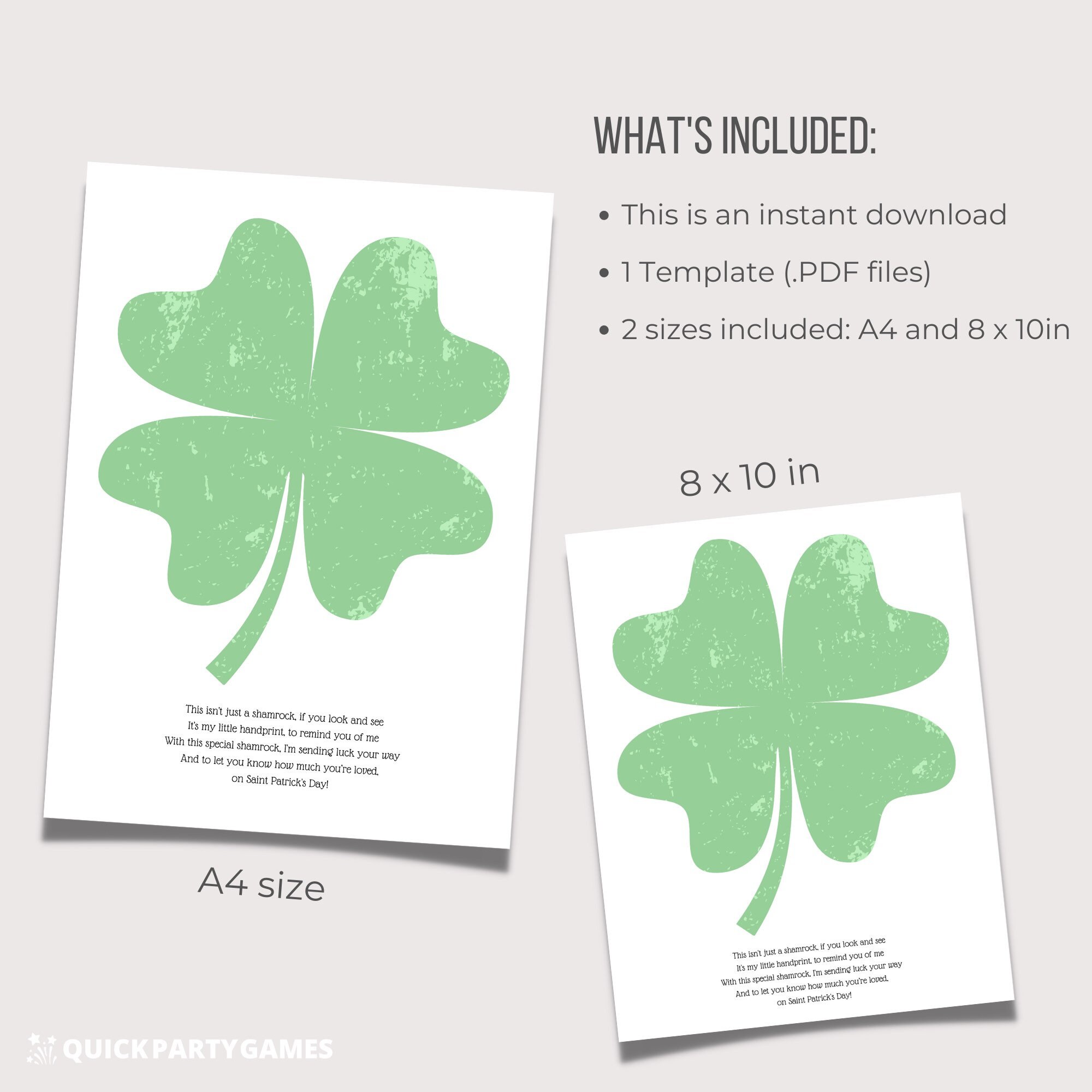 Shamrock/ Four Leaf Clover template with handprint poem - perfect for St Patrick’s Day