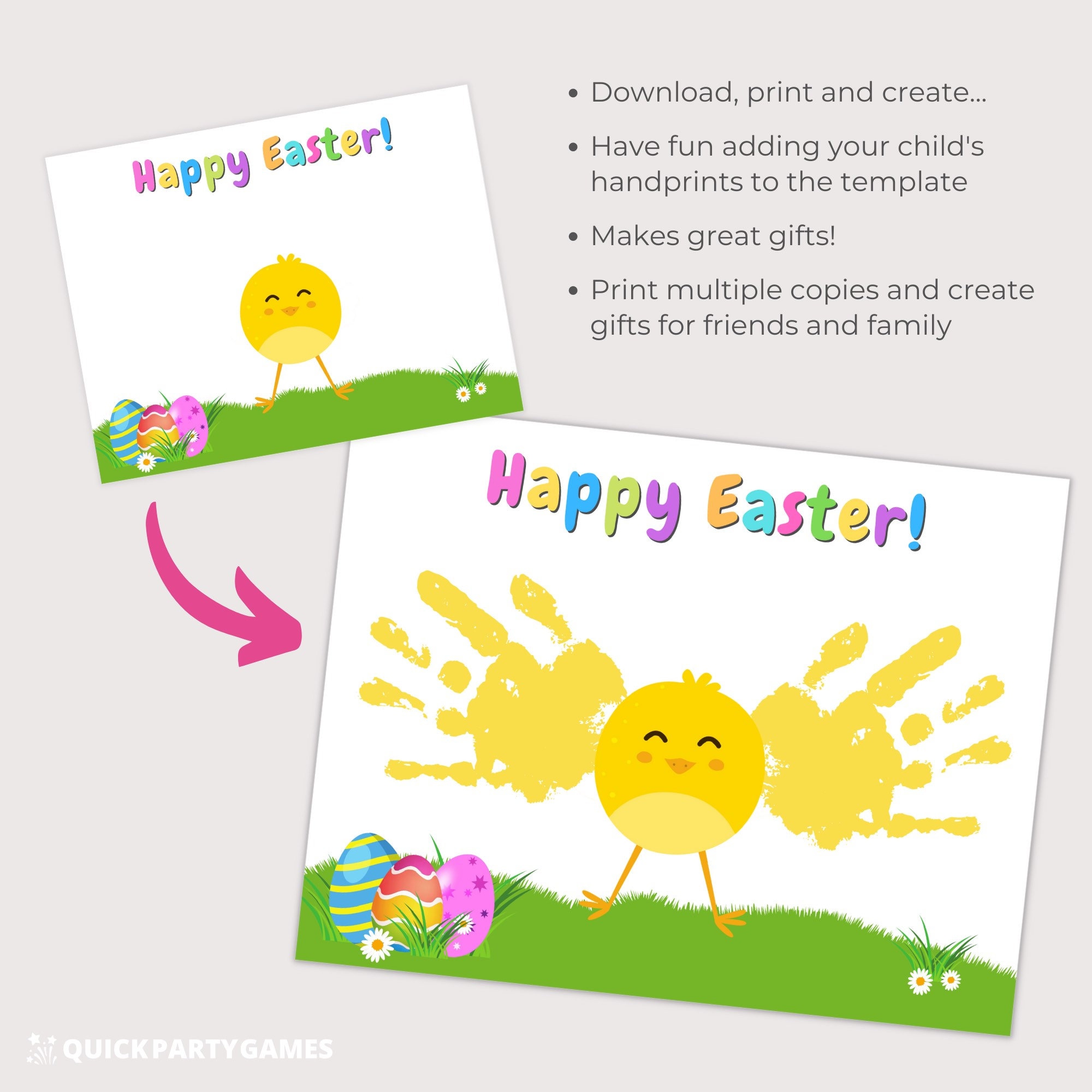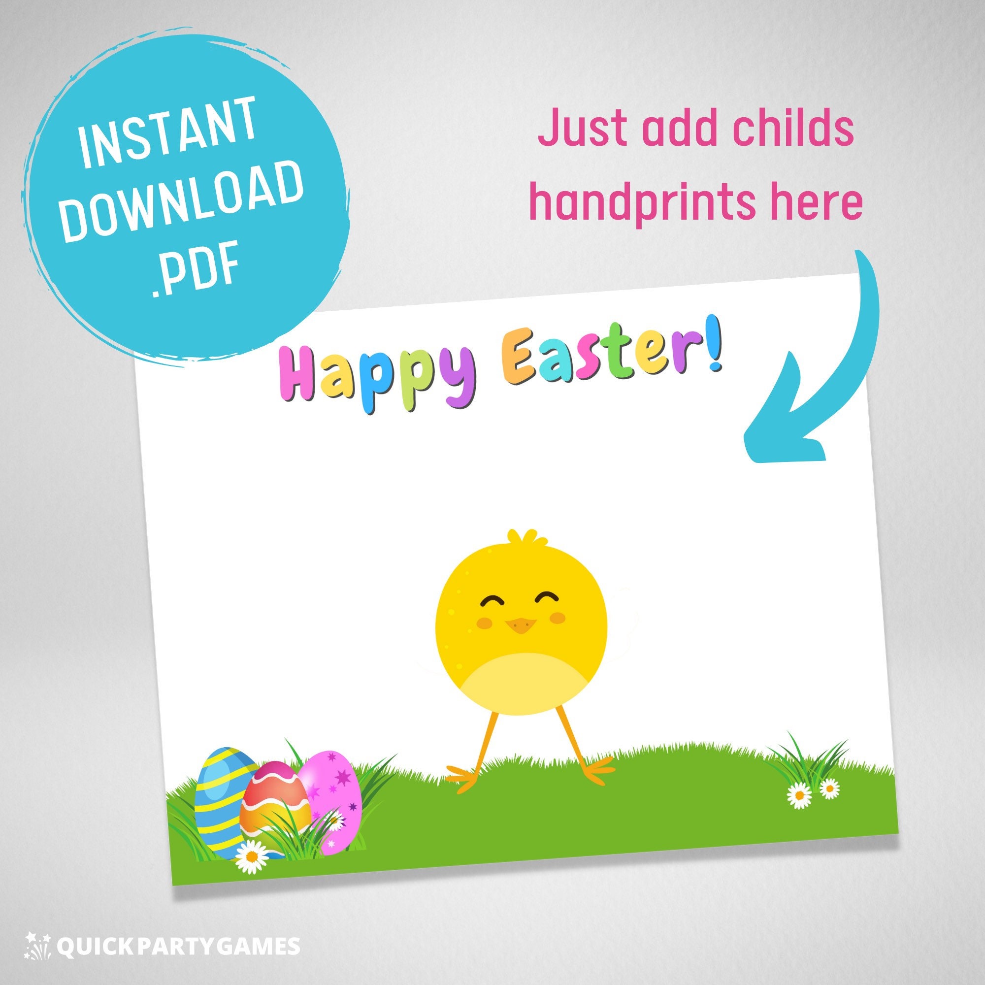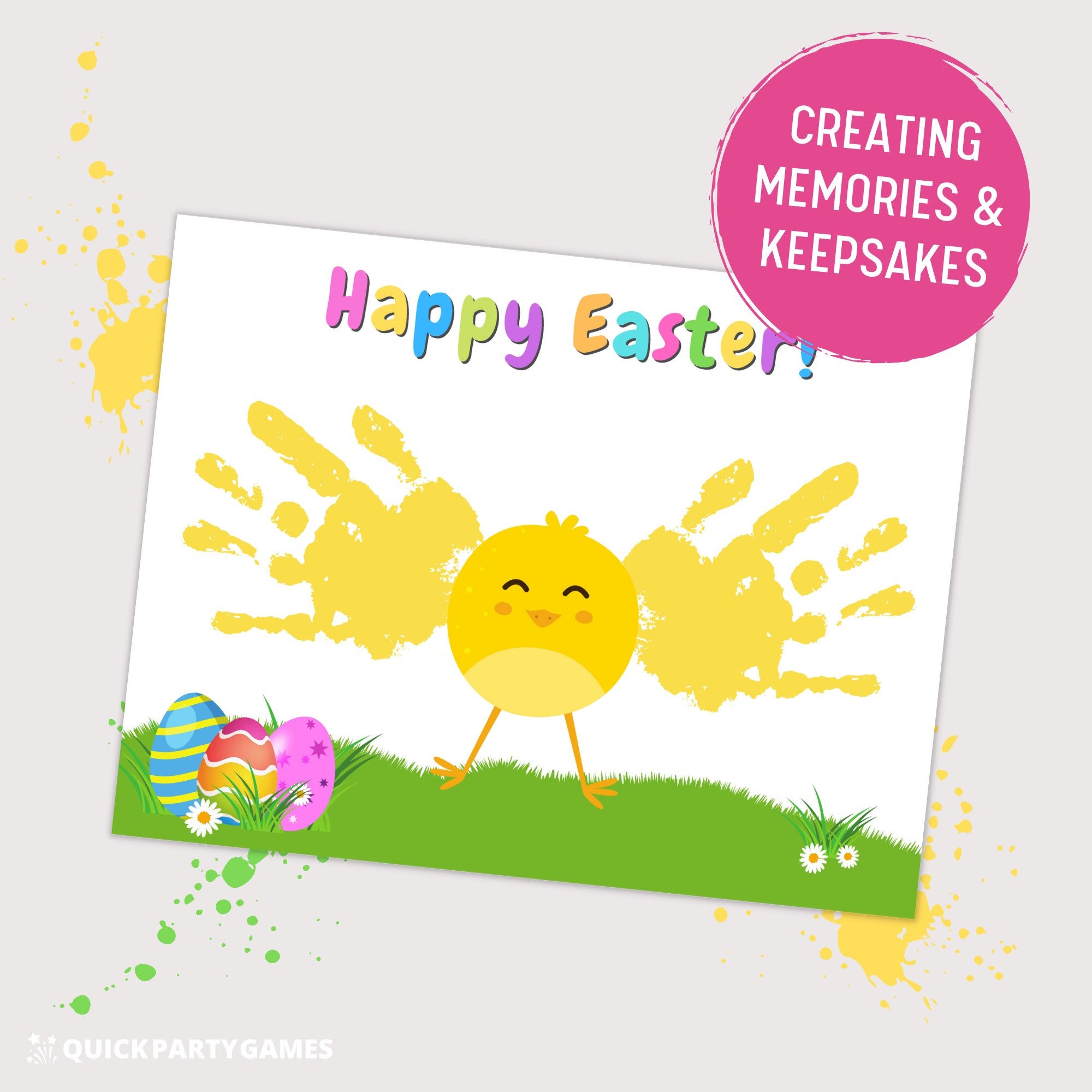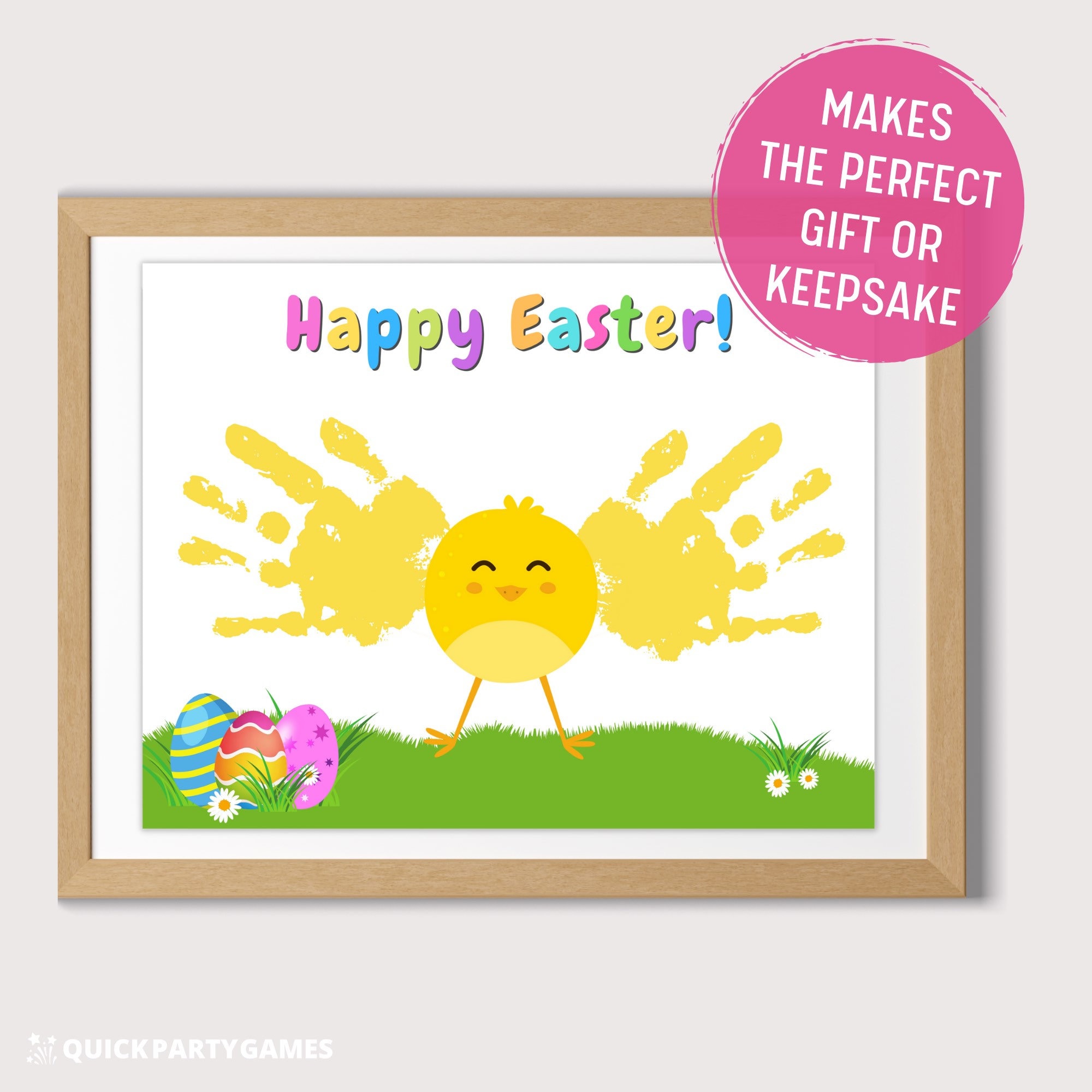 A cute keepsake Happy Easter Chick - add your childs handprints to create a cute Easter chicken, perfect for Easter cards, gifts or keepsake of your child’s handprint.