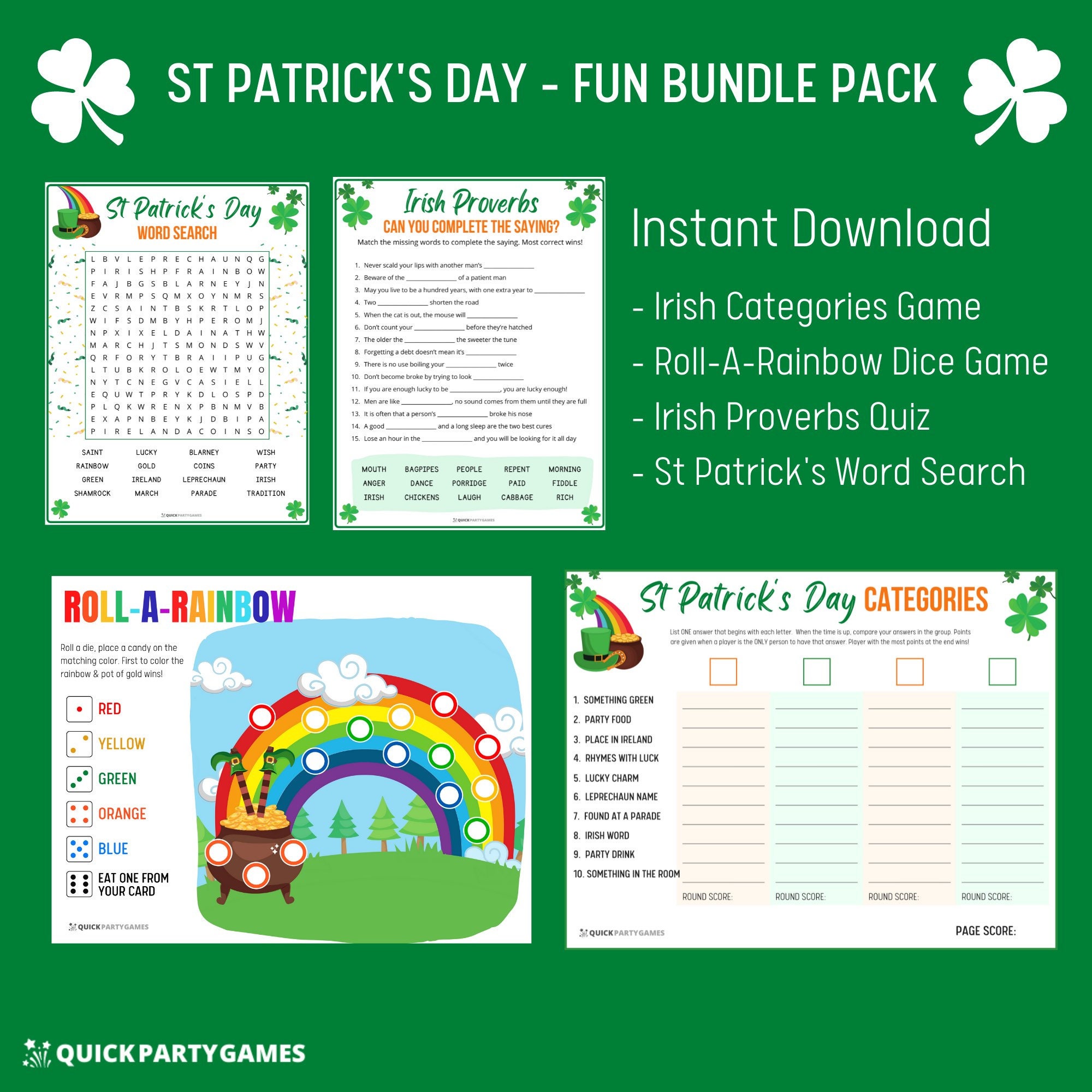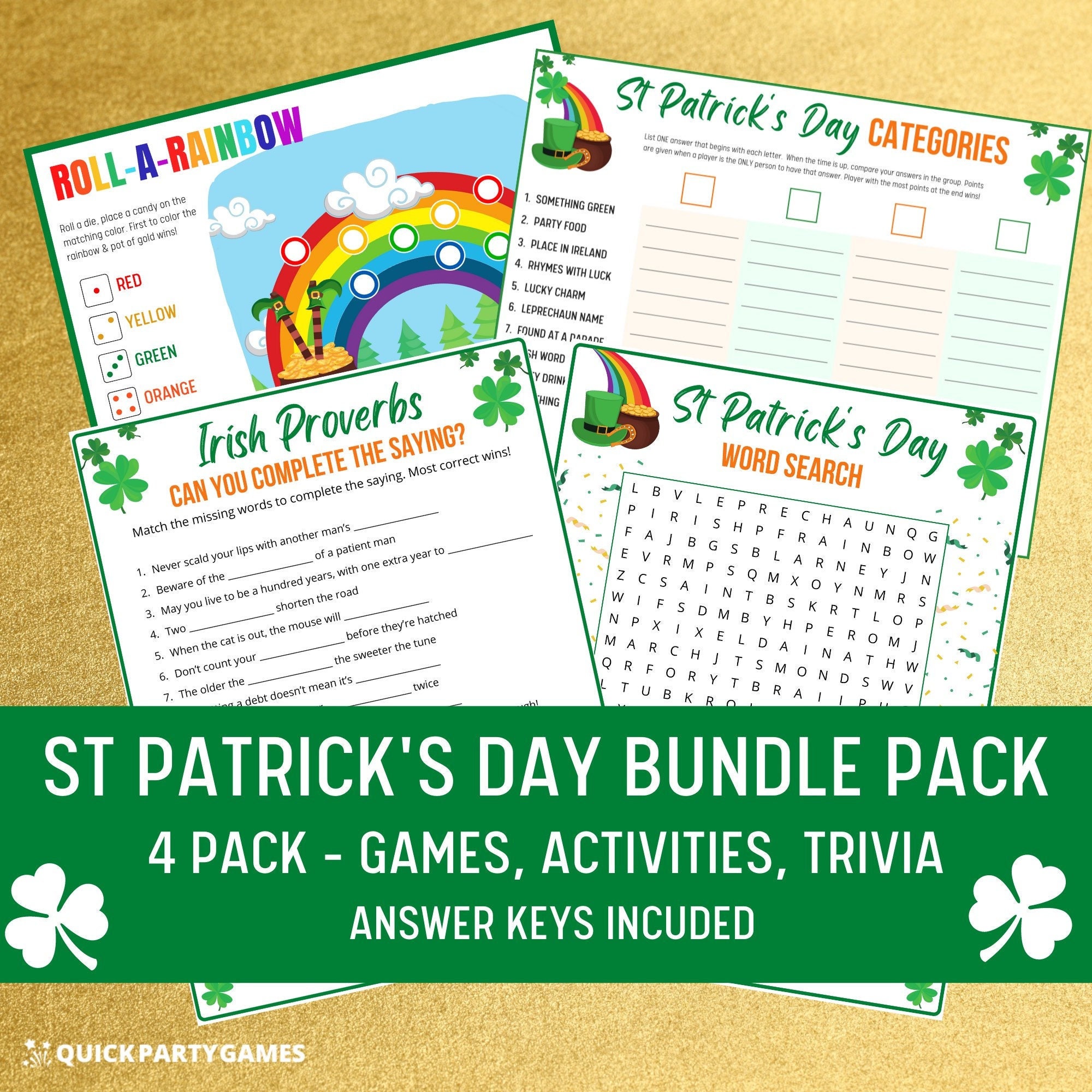 St Patrick's Day Games - Fun Bundle Pack, Mixture of Games, Activities and Trivia
