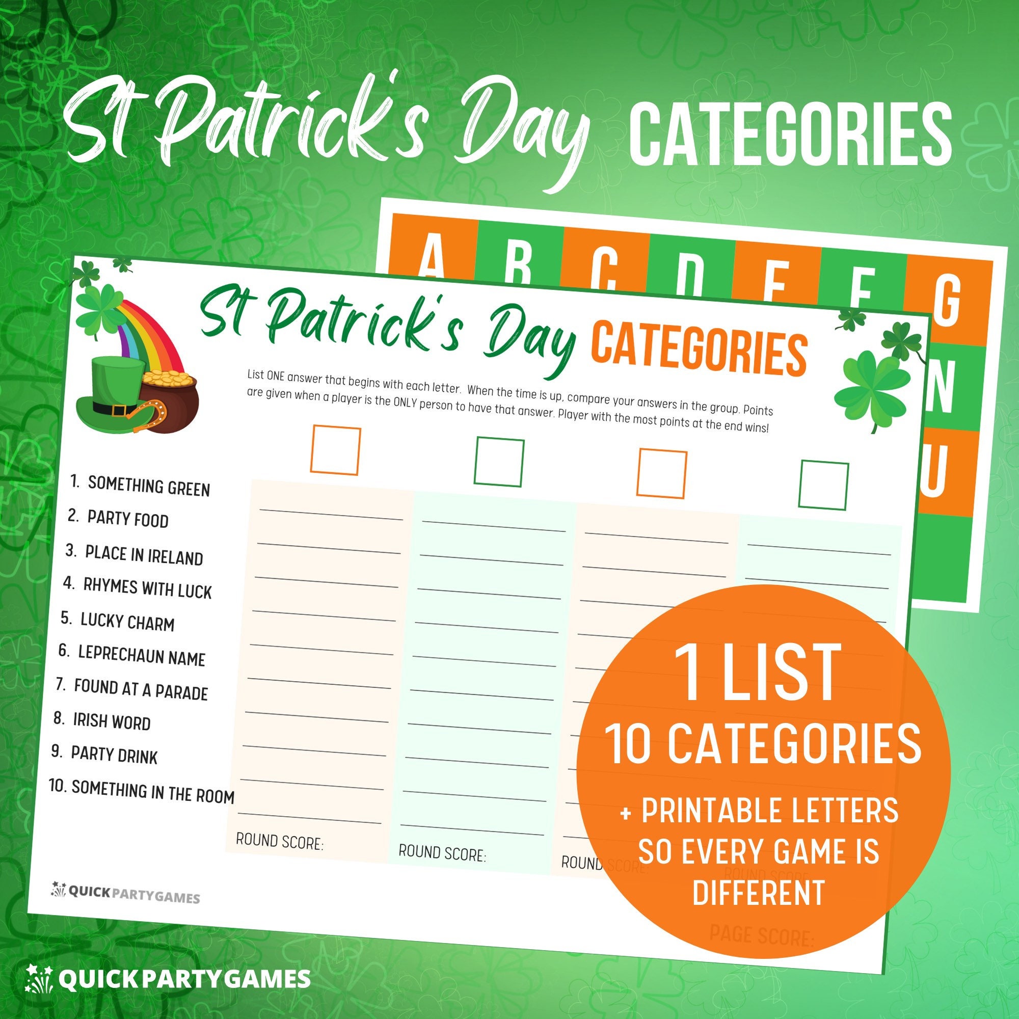 - Irish/St Patrick's Categories (Scattergories)