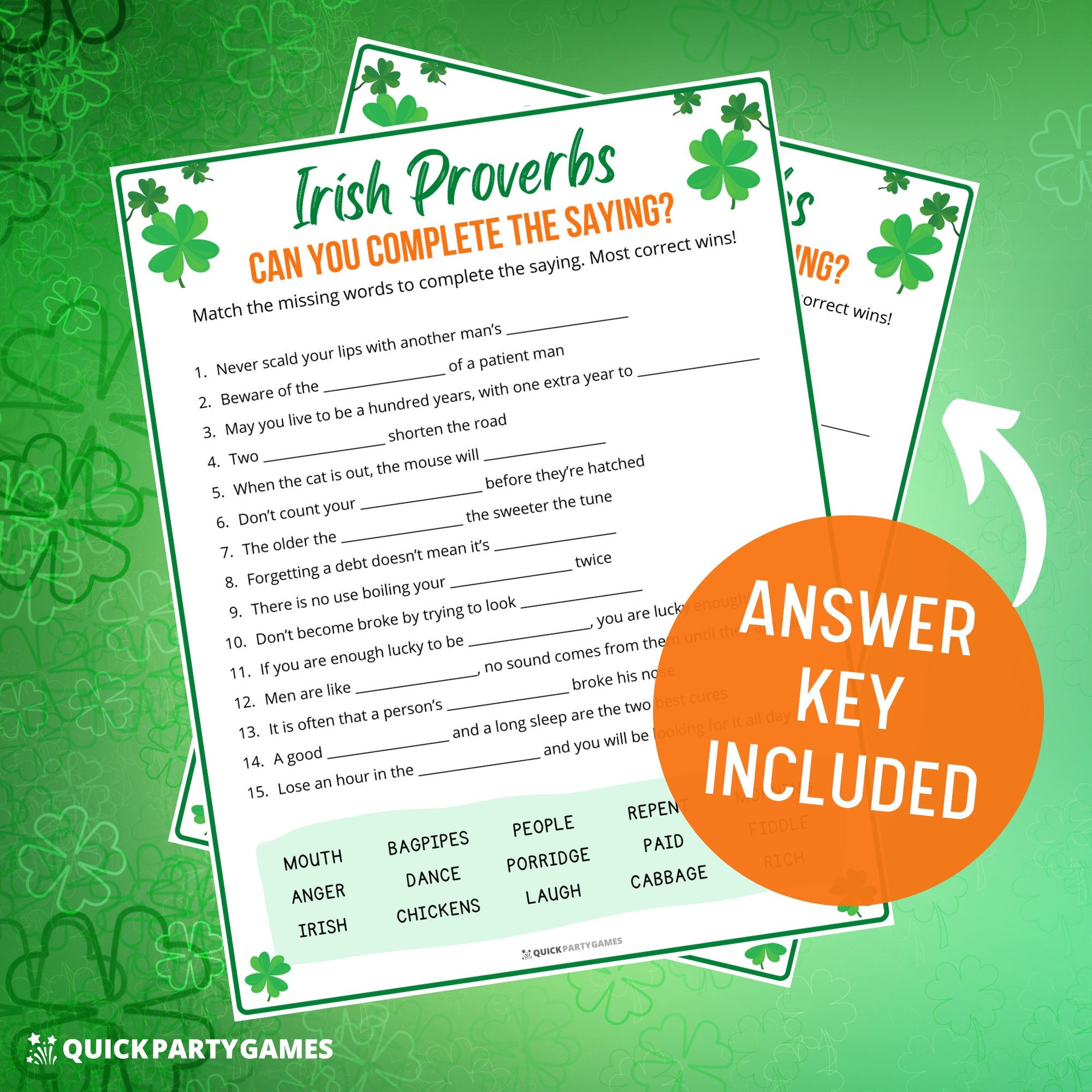 3. St Patrick's Day - Irish Proverbs Quiz/Trivia Game