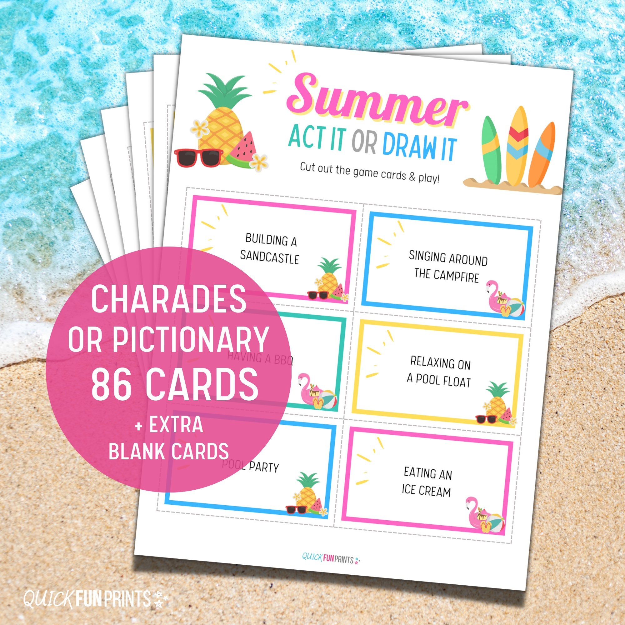 - Summer Charades & Draw It (86 Cards)