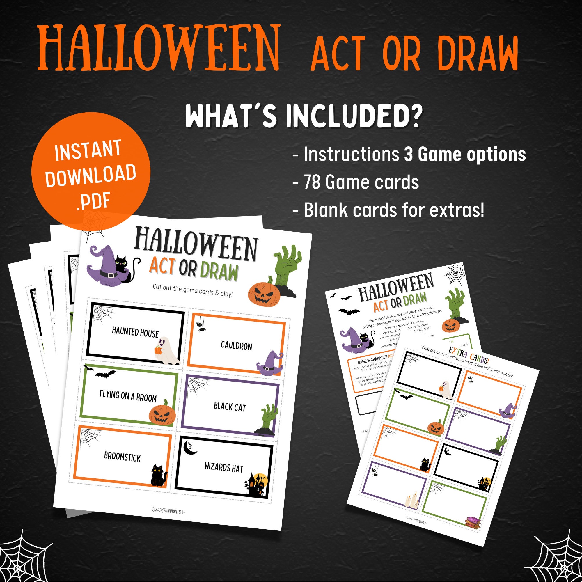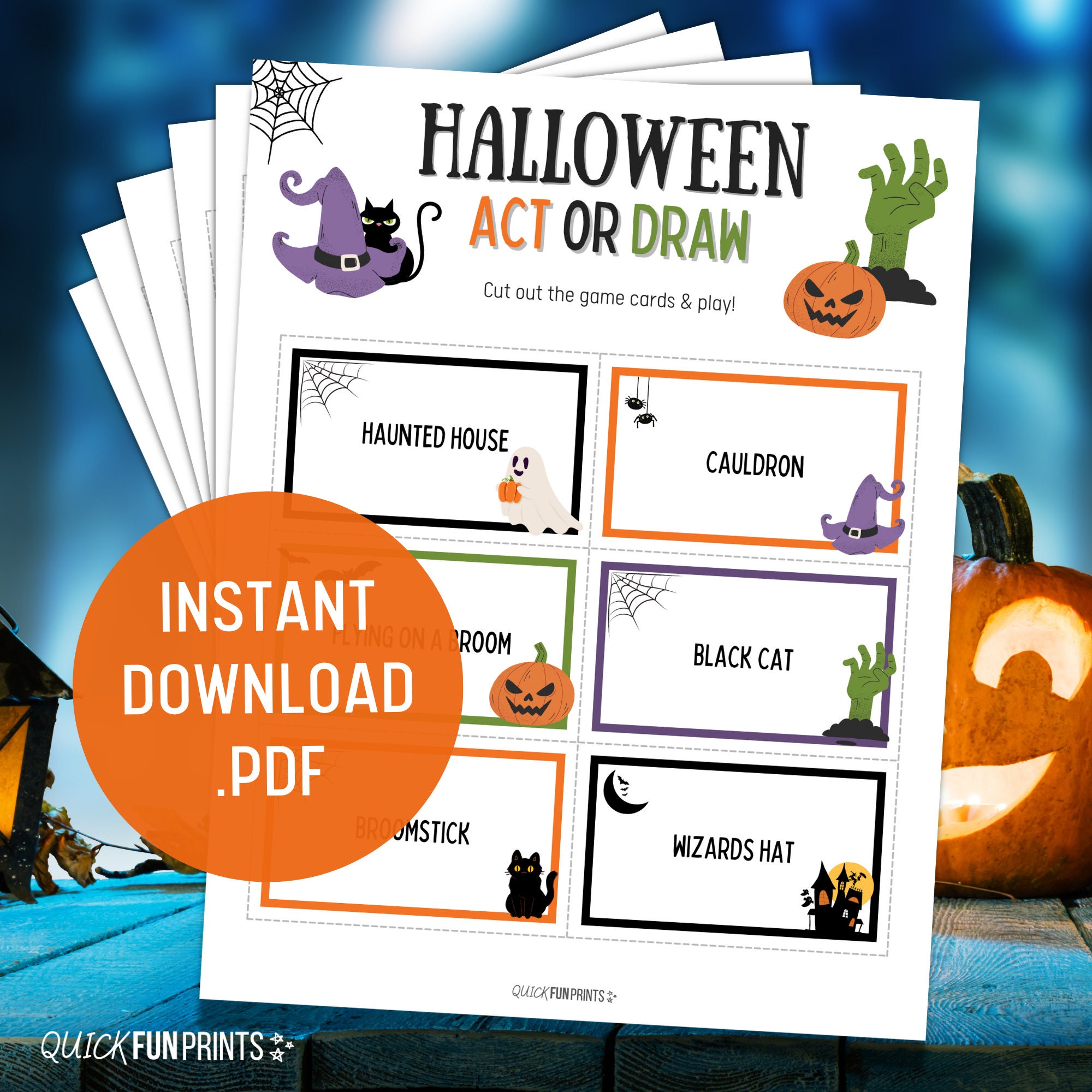 Halloween Printable, Halloween Game Downloadable, Halloween Digital Download Halloween family game, Halloween Kids Game, Halloween party games, Halloween Games. Guess the Halloween themed card by acting or drawing, Halloween Season Games