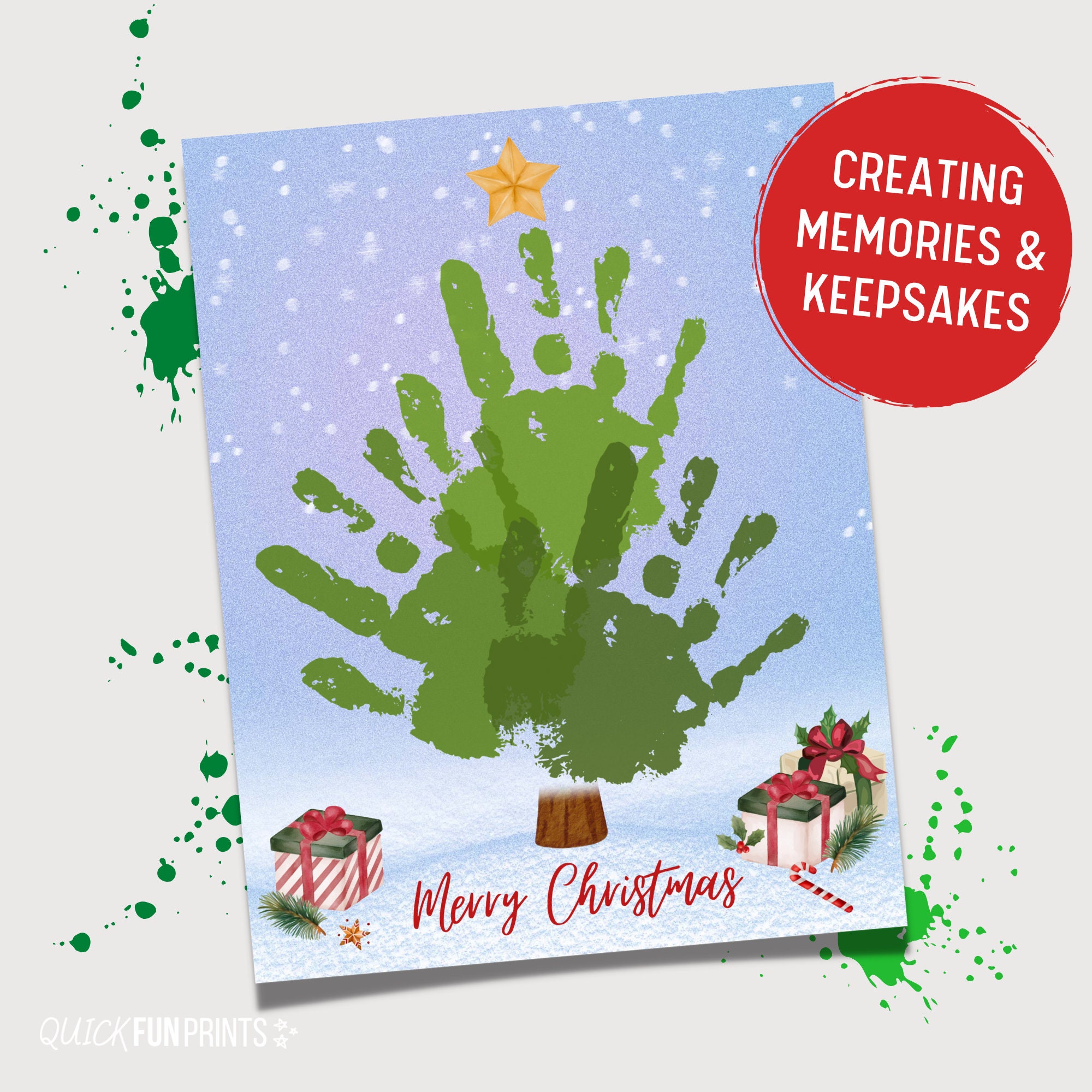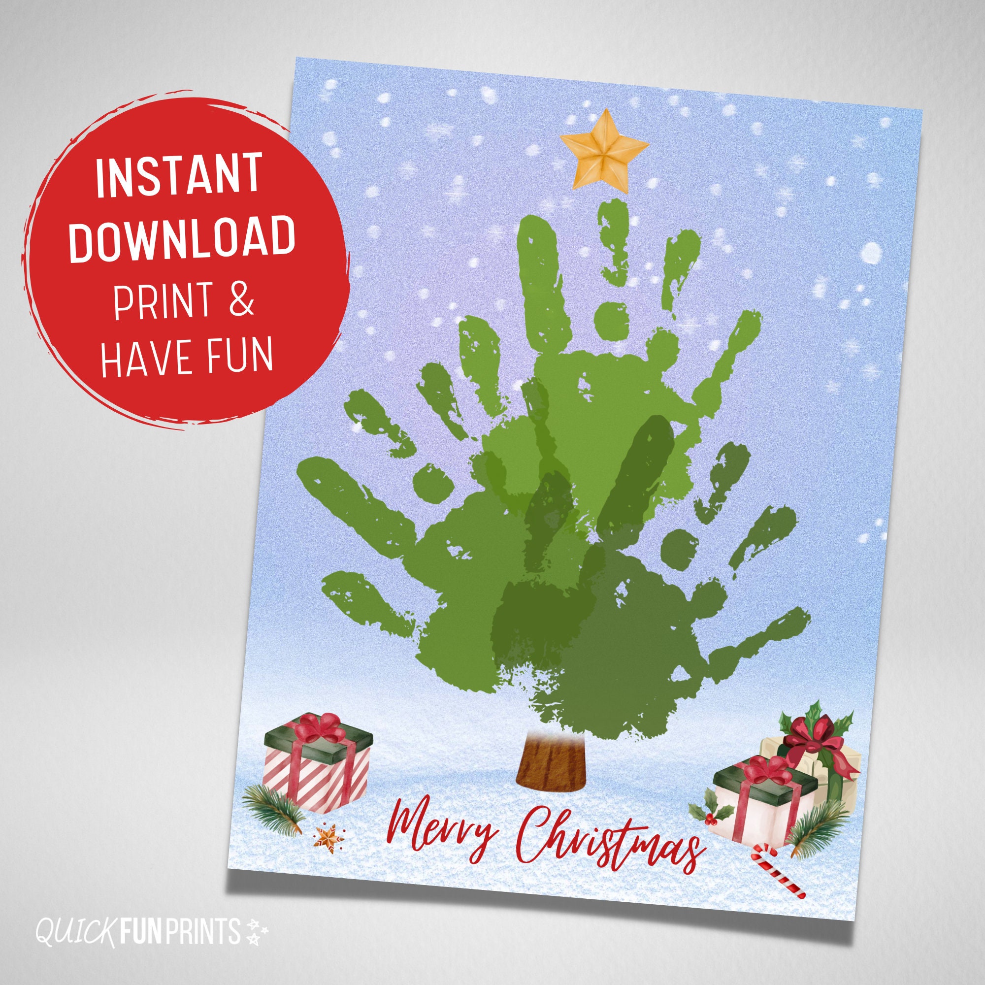 Christmas DIY gift or greeting card, Christmas Tree Template - Perfect Christmas craft for kids, add baby or Toddler handprint to make the Christmas Tree, cute craft or wall art