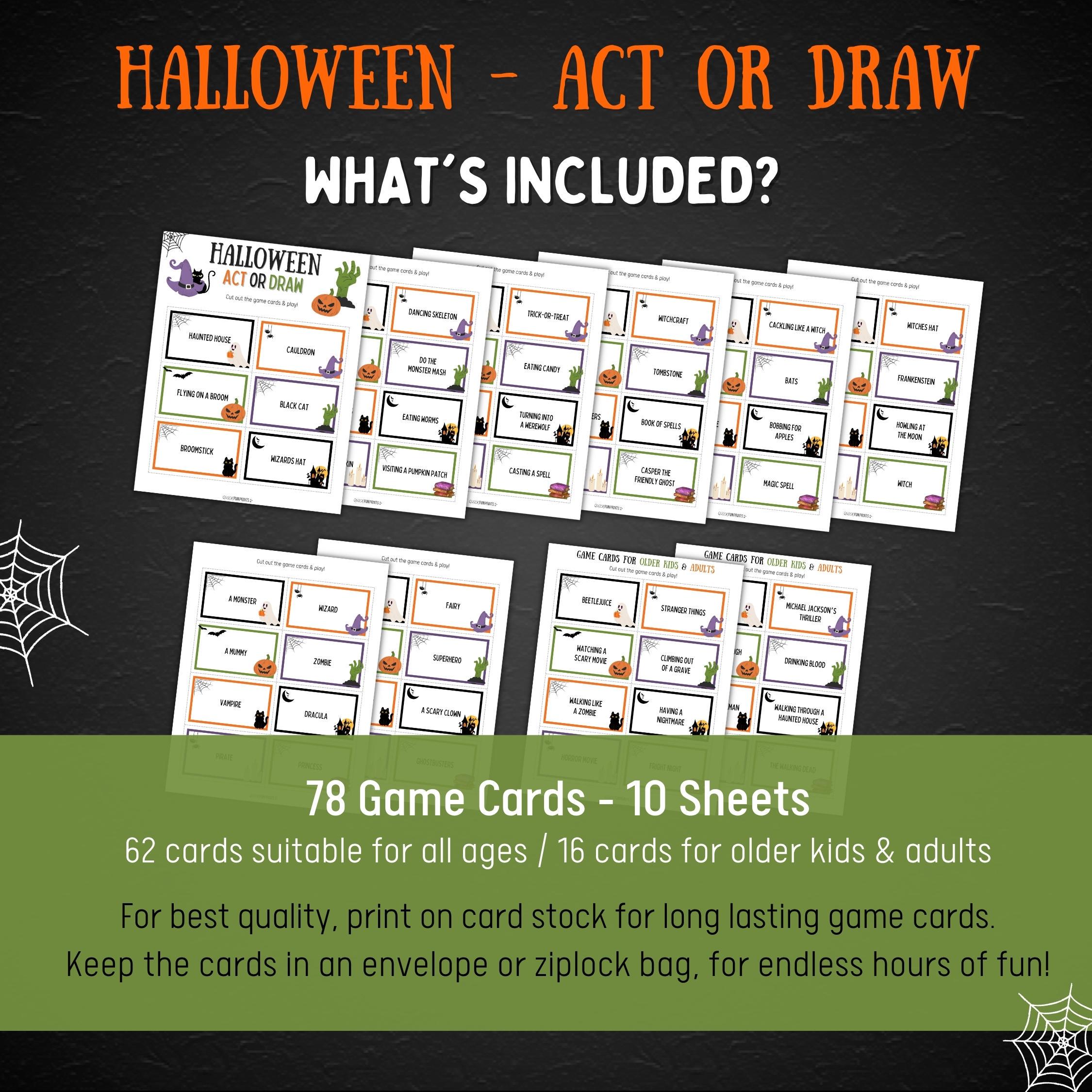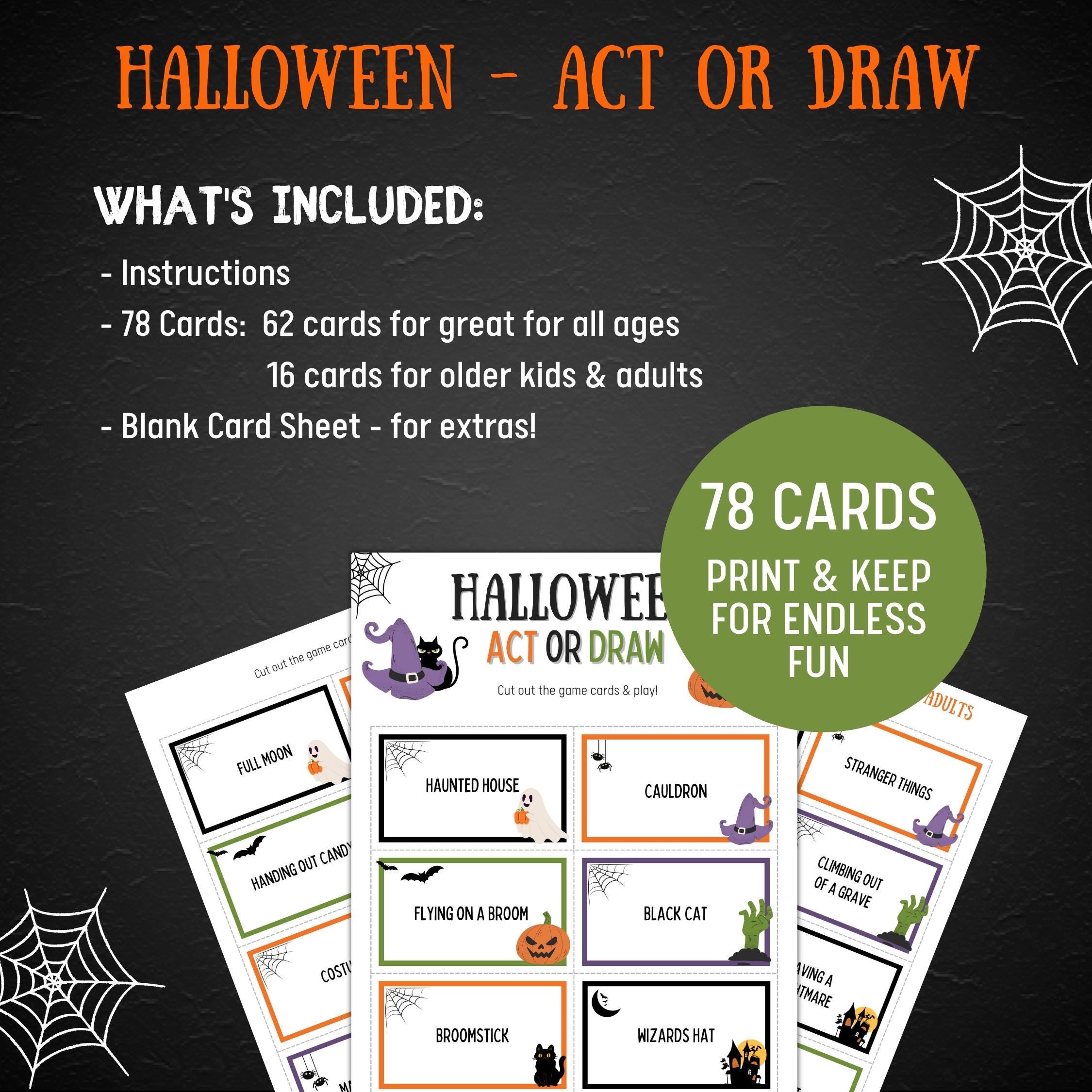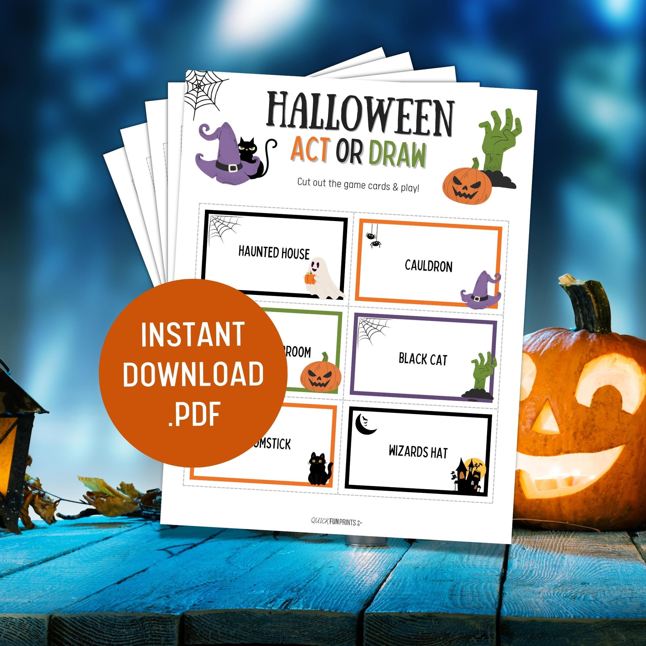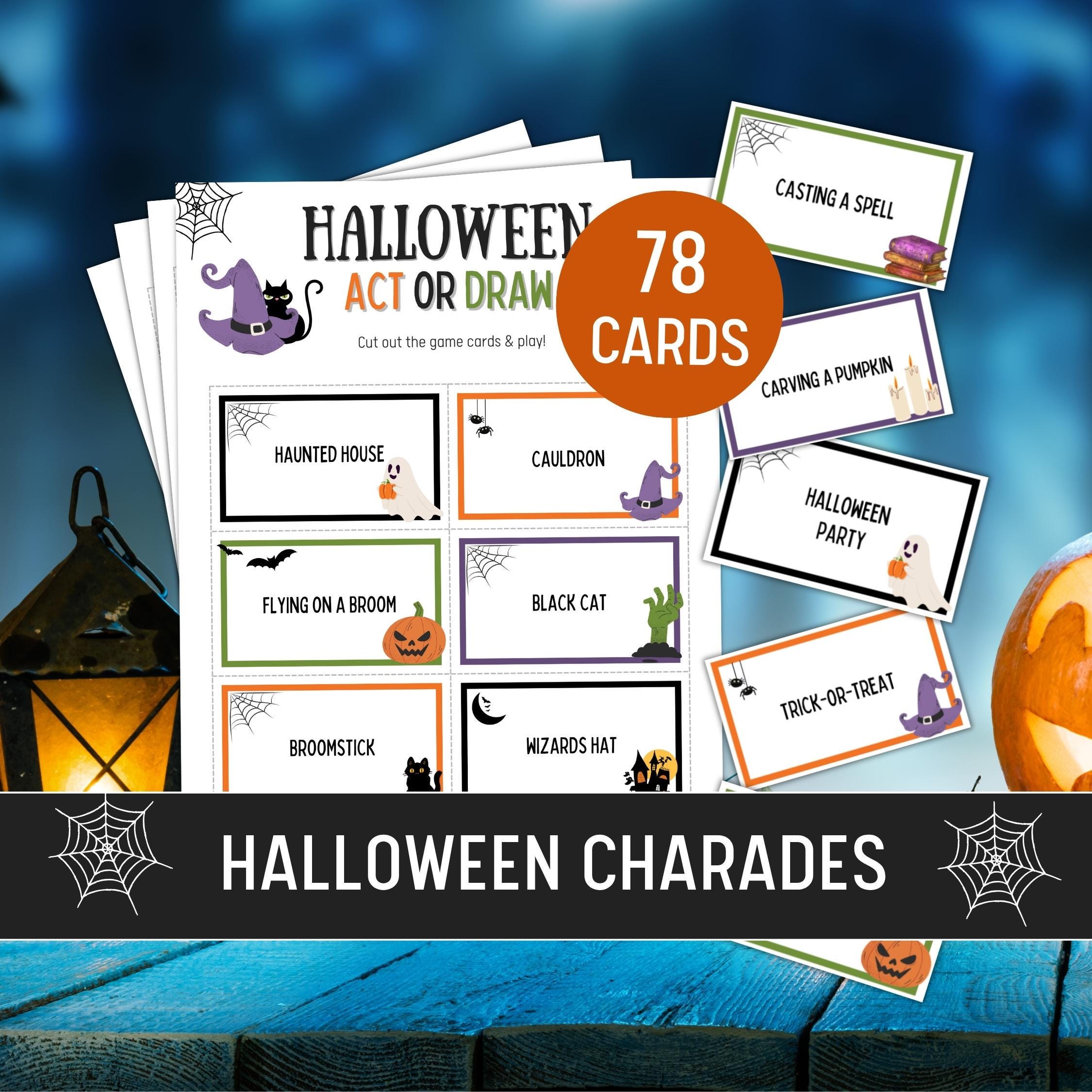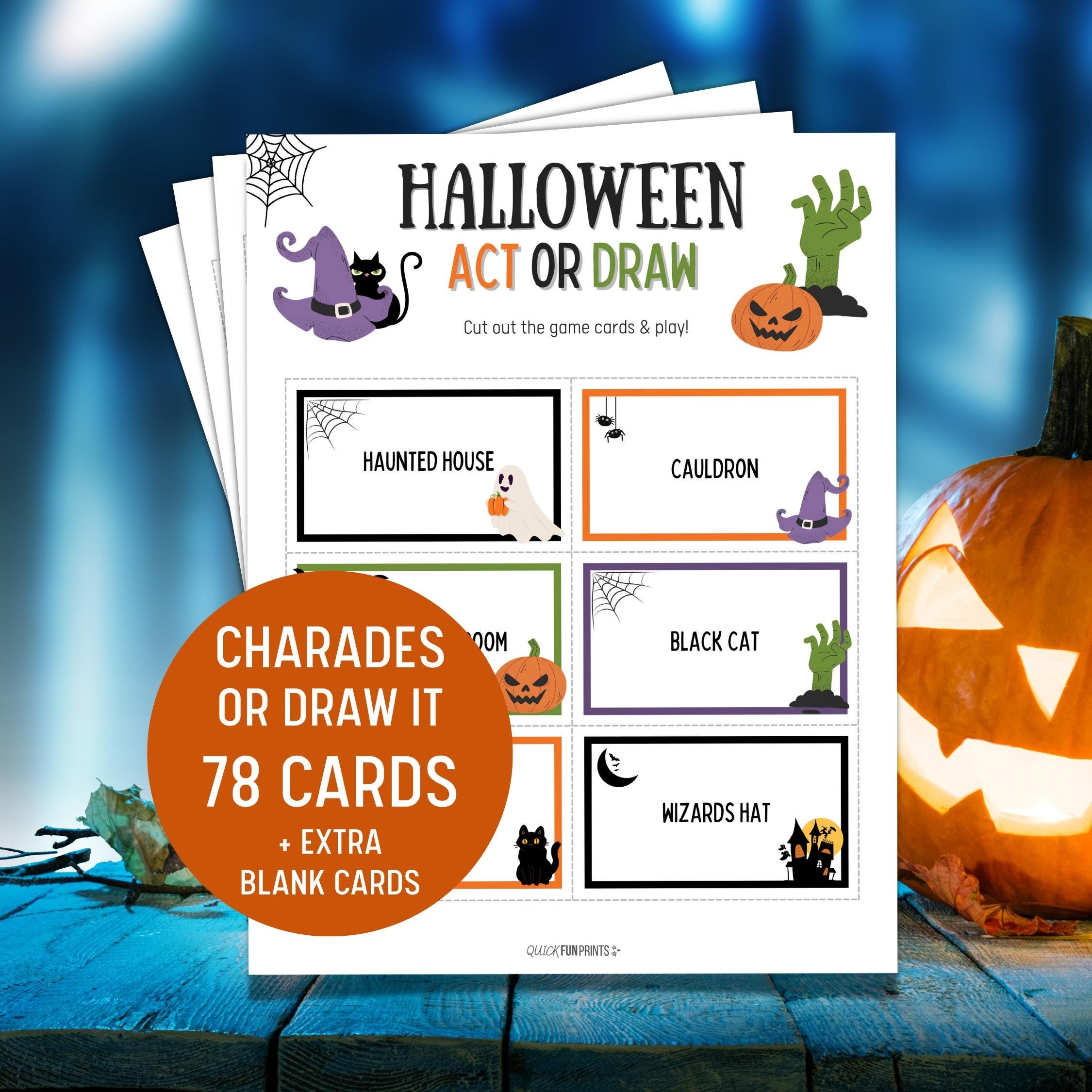 Halloween Printable, Halloween Game Downloadable, Halloween Digital Download Halloween family game, Halloween Kids Game, Halloween party games, Halloween Games. Guess the Halloween themed card by acting or drawing, Halloween Season Games