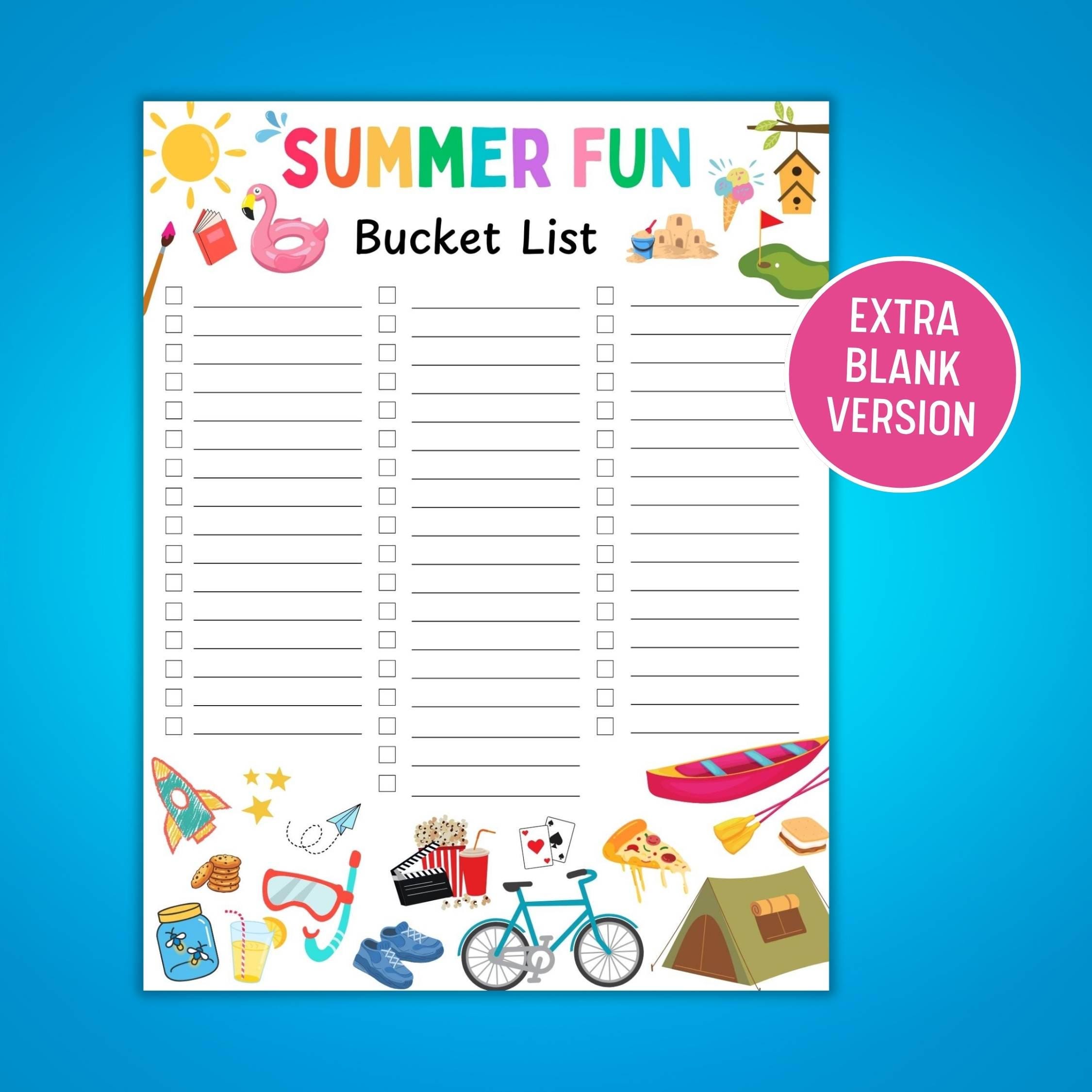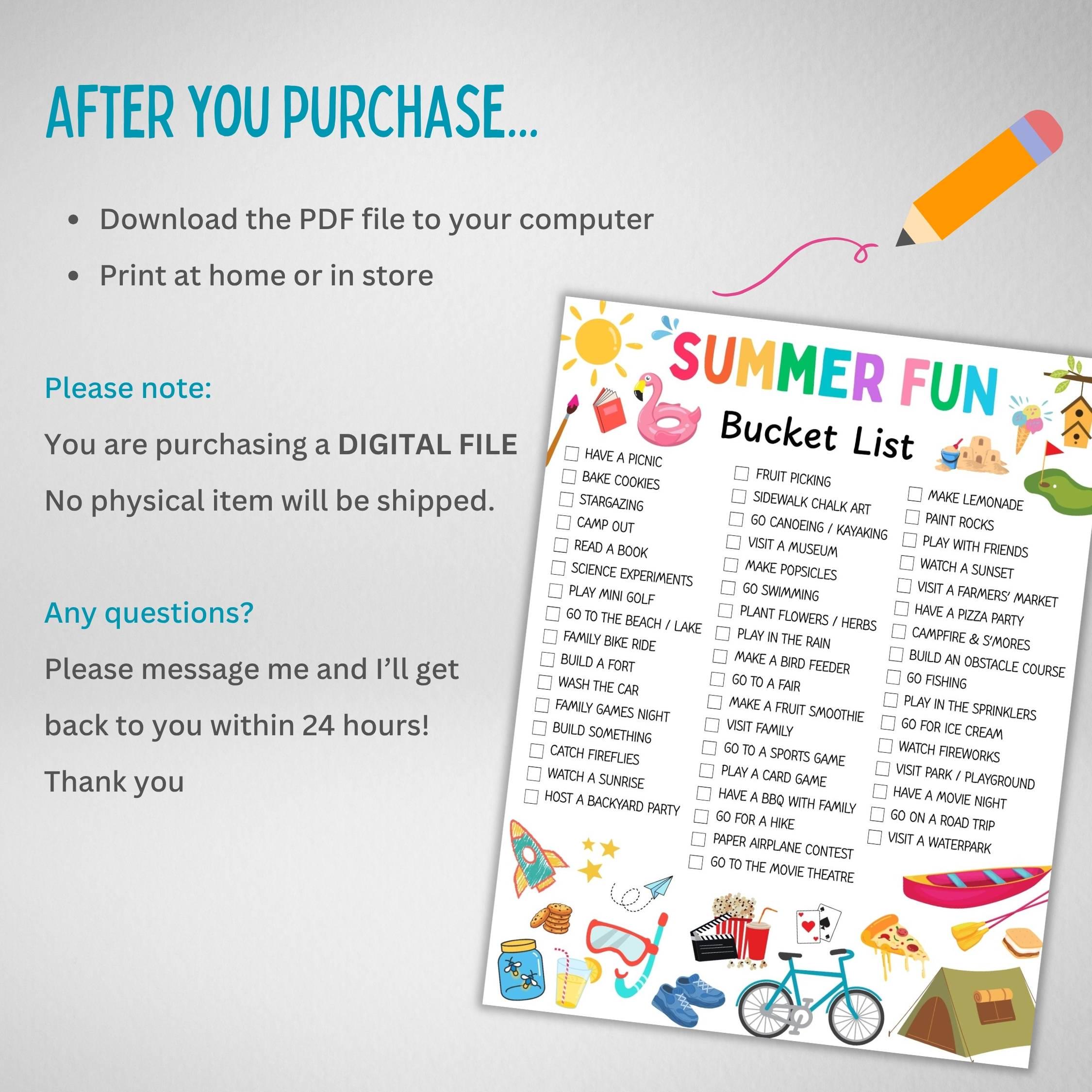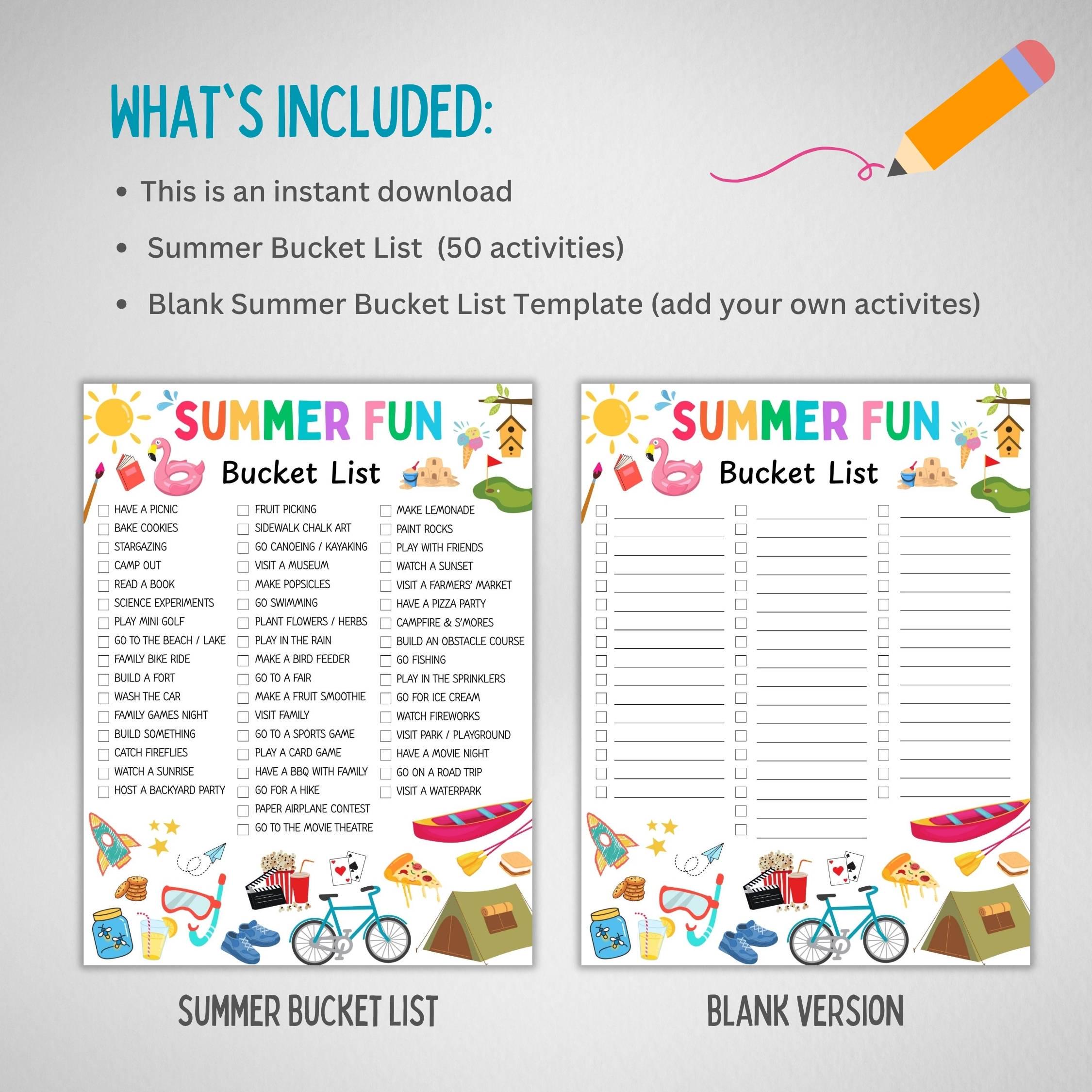 Note: This Summer Bucket List Printable is not editable, however a blank version is included for you to print and write your own list if needed!
