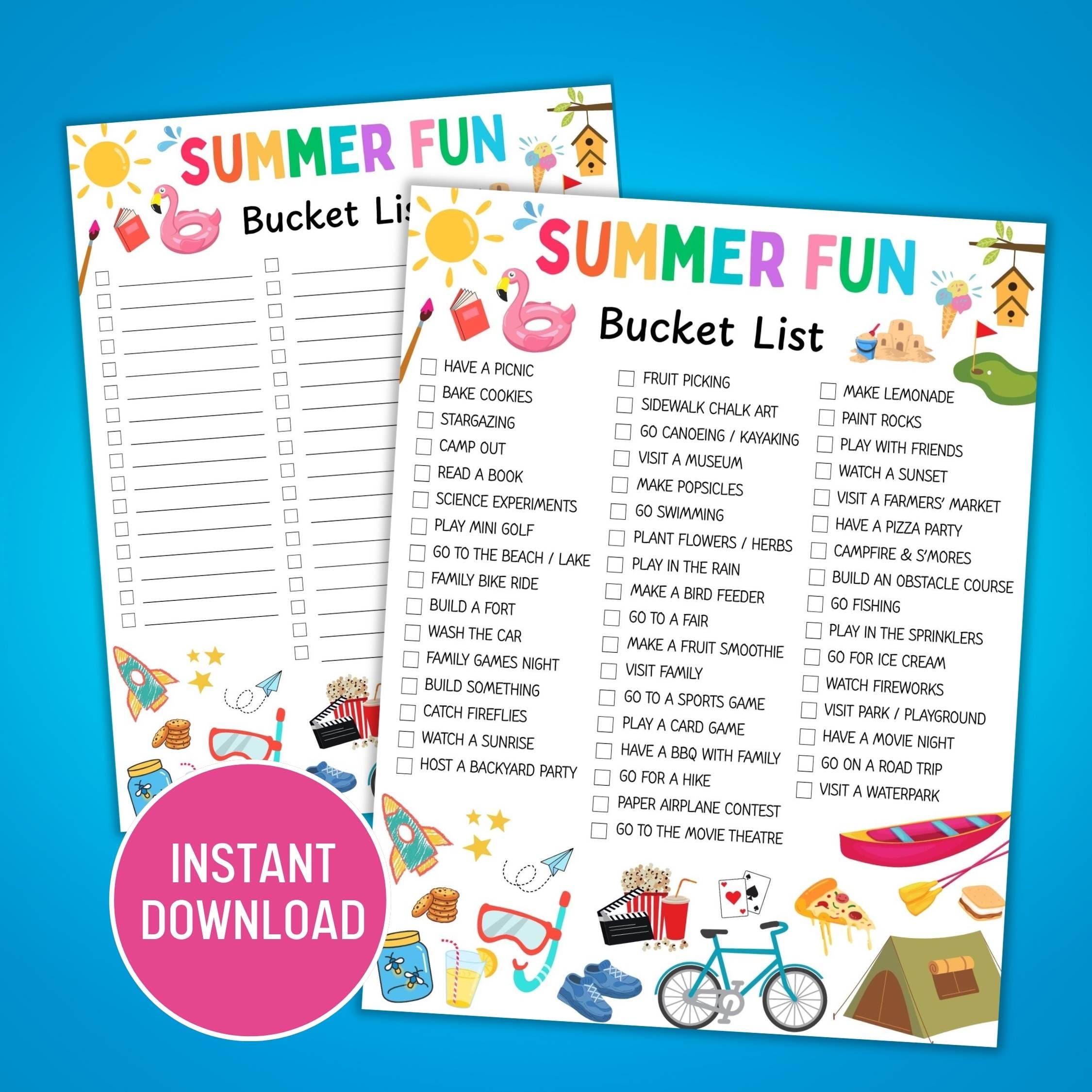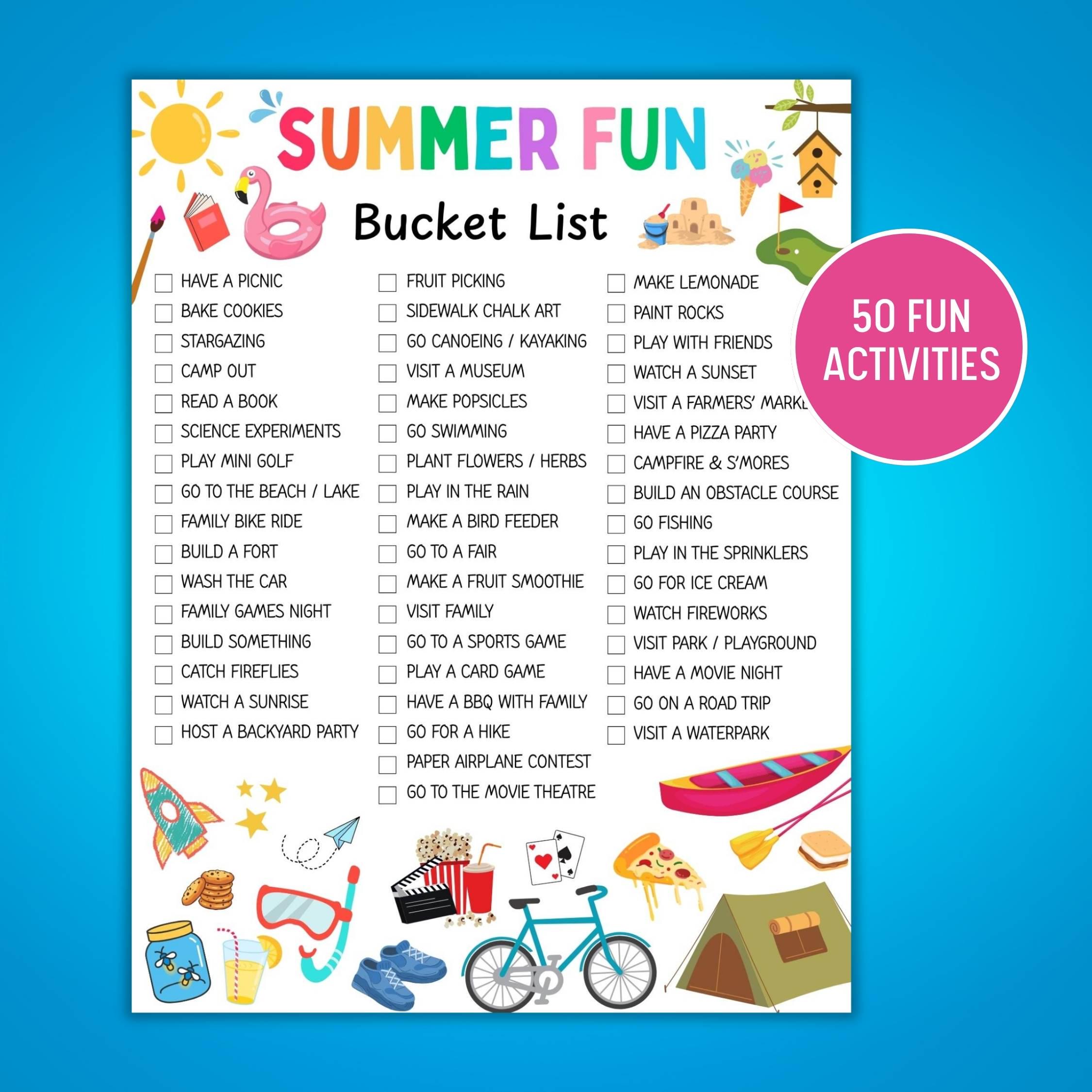 Summer Bucket List Printable - 50 Fun Activities to Keep Kids Busy All Summer!