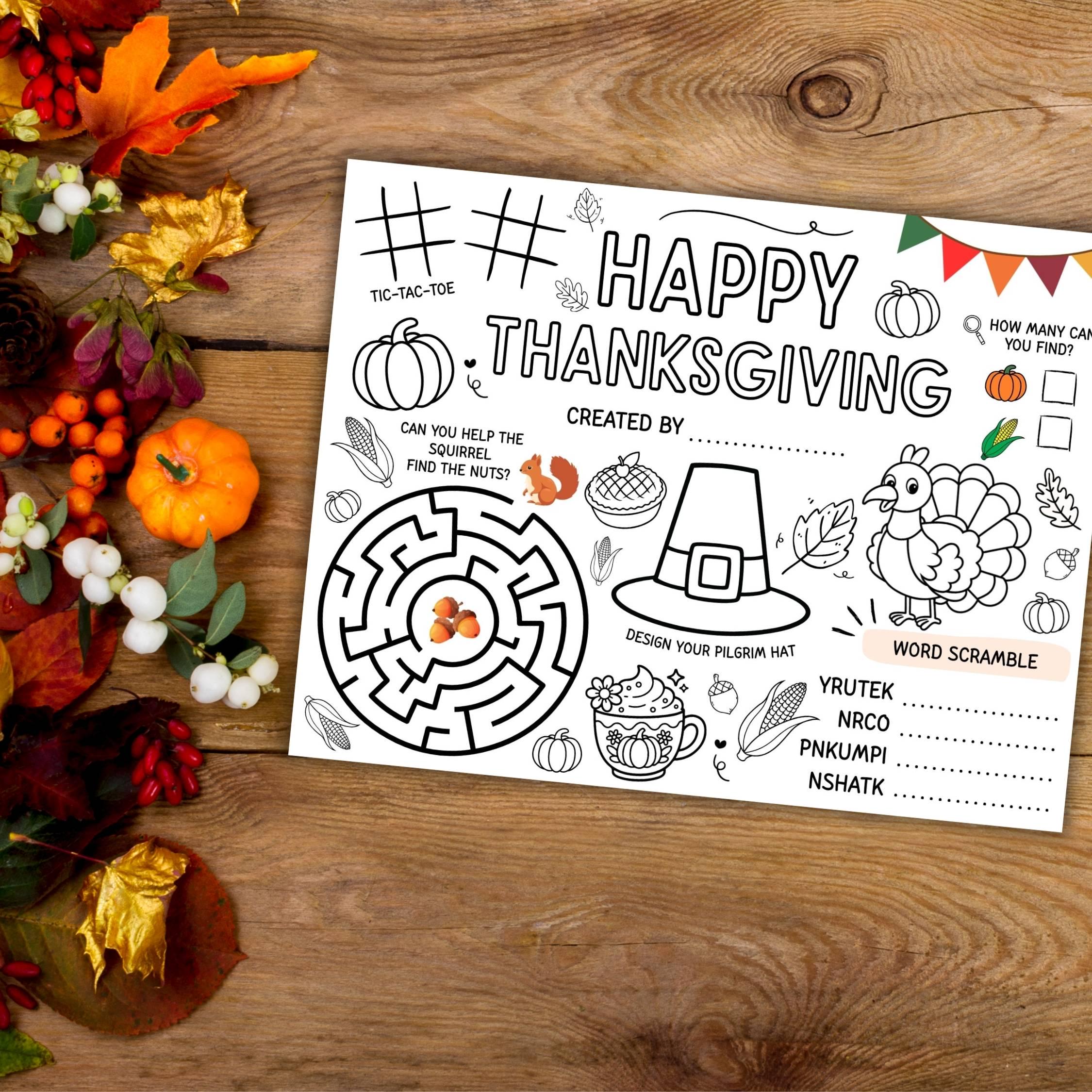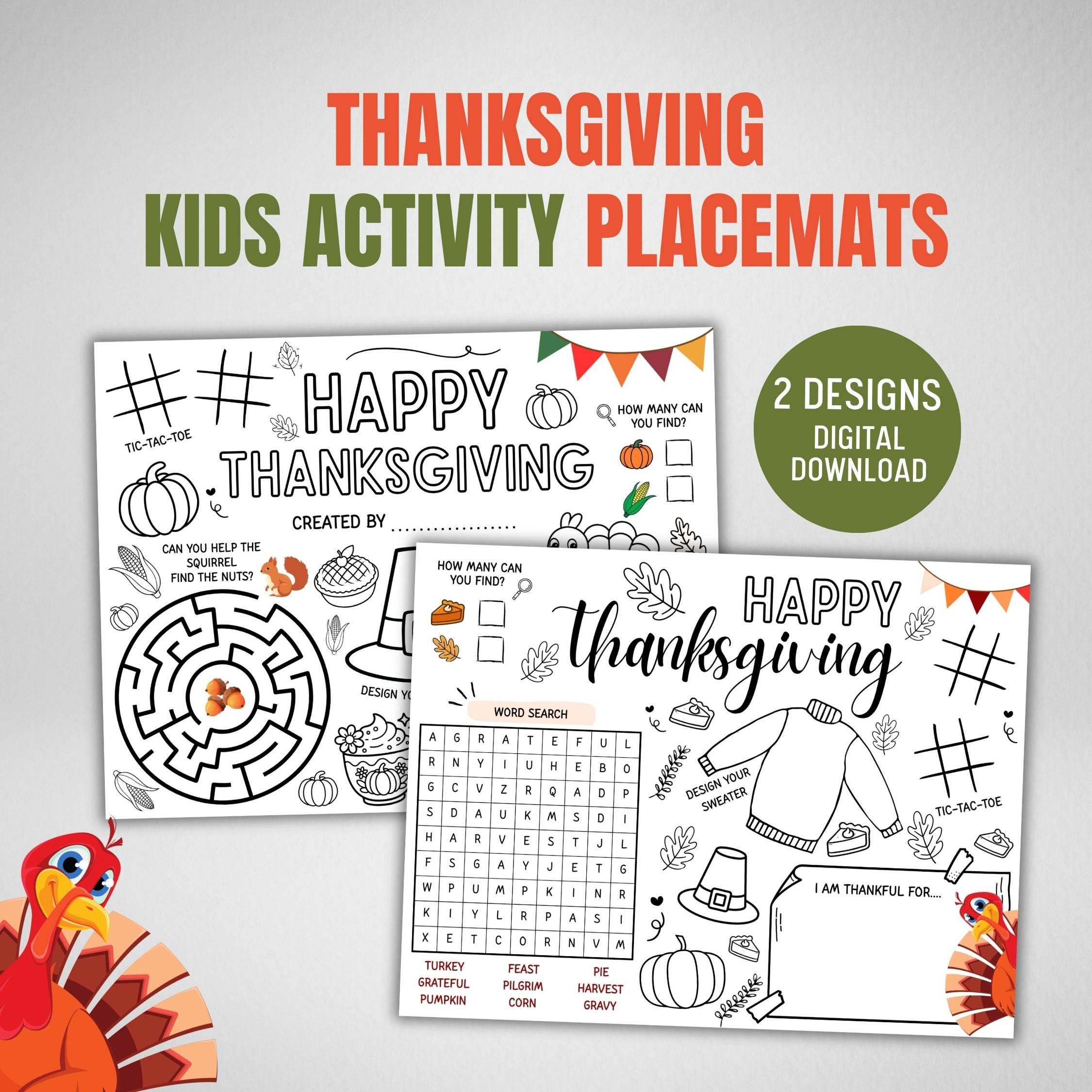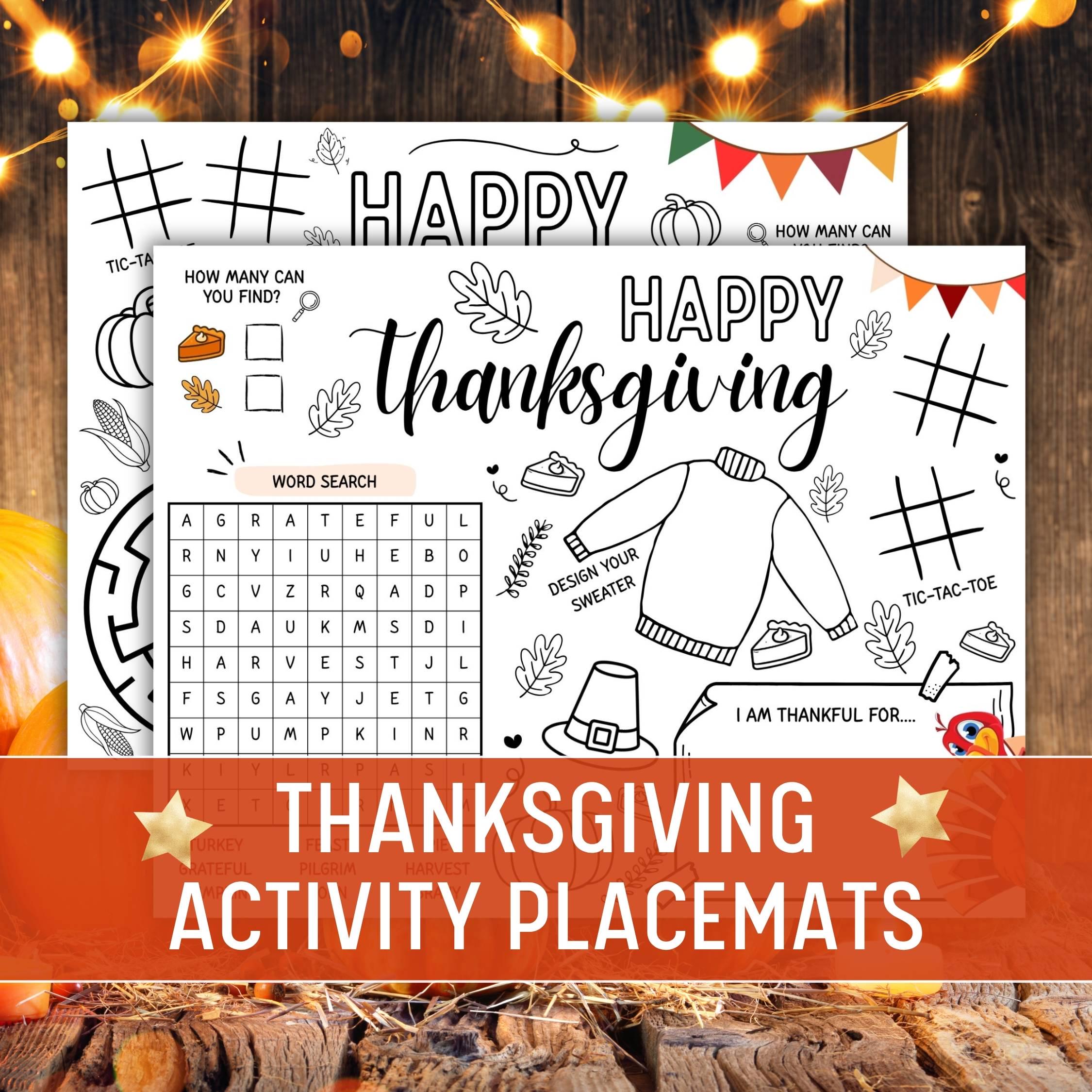 Keep the kids entertained at your Thanksgiving table with these fun activity placemats!