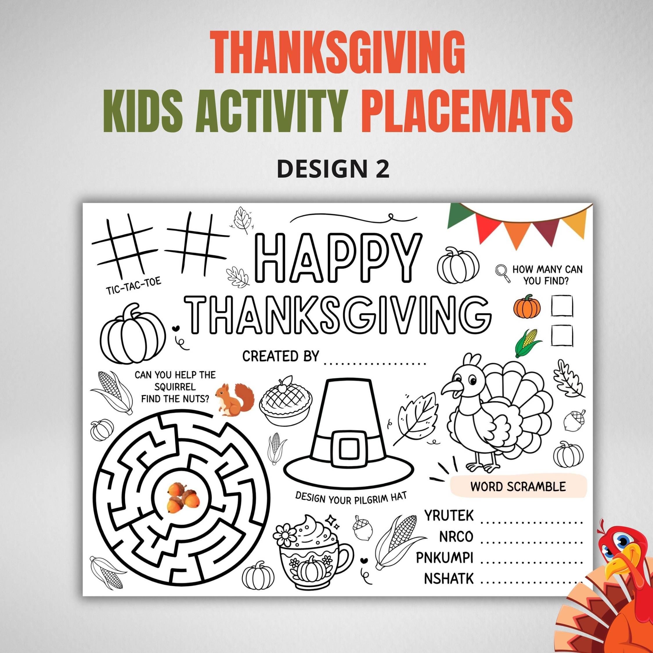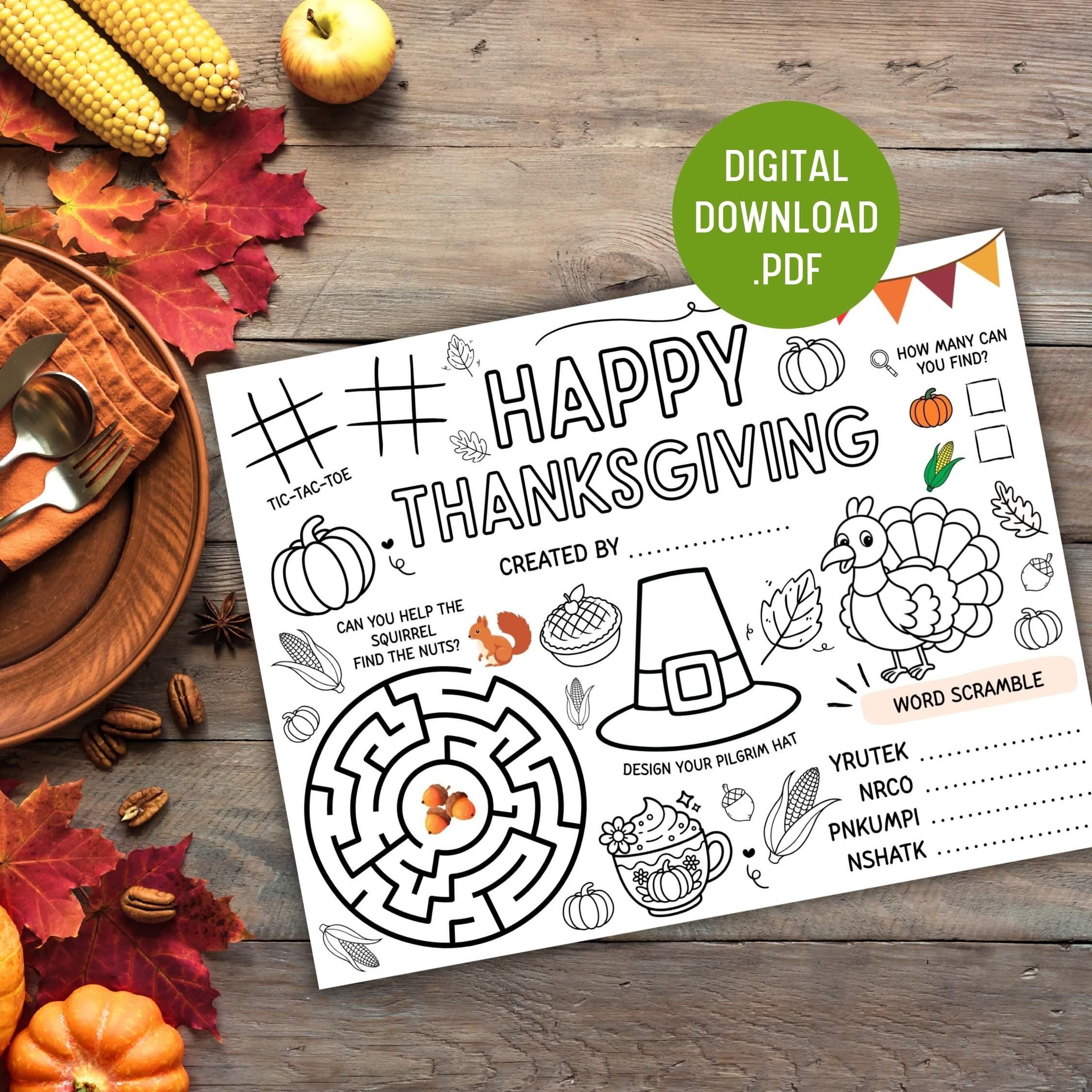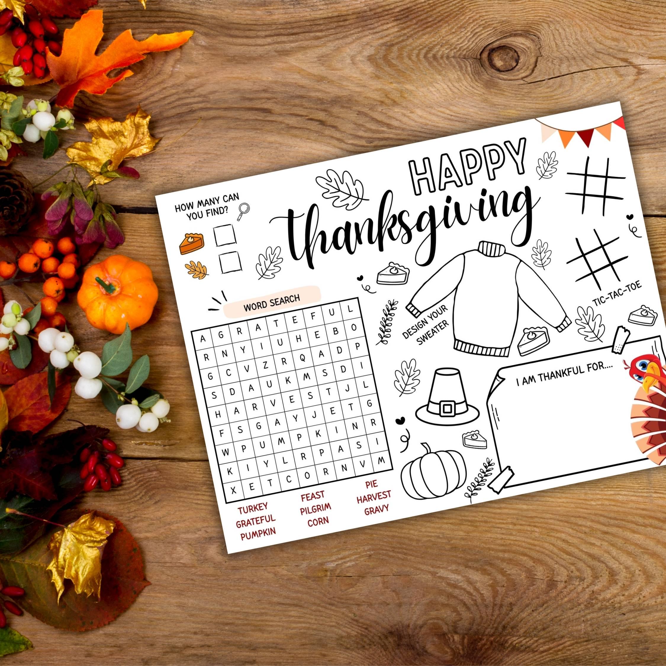 Keep the kids entertained at your Thanksgiving table with these fun activity placemats!