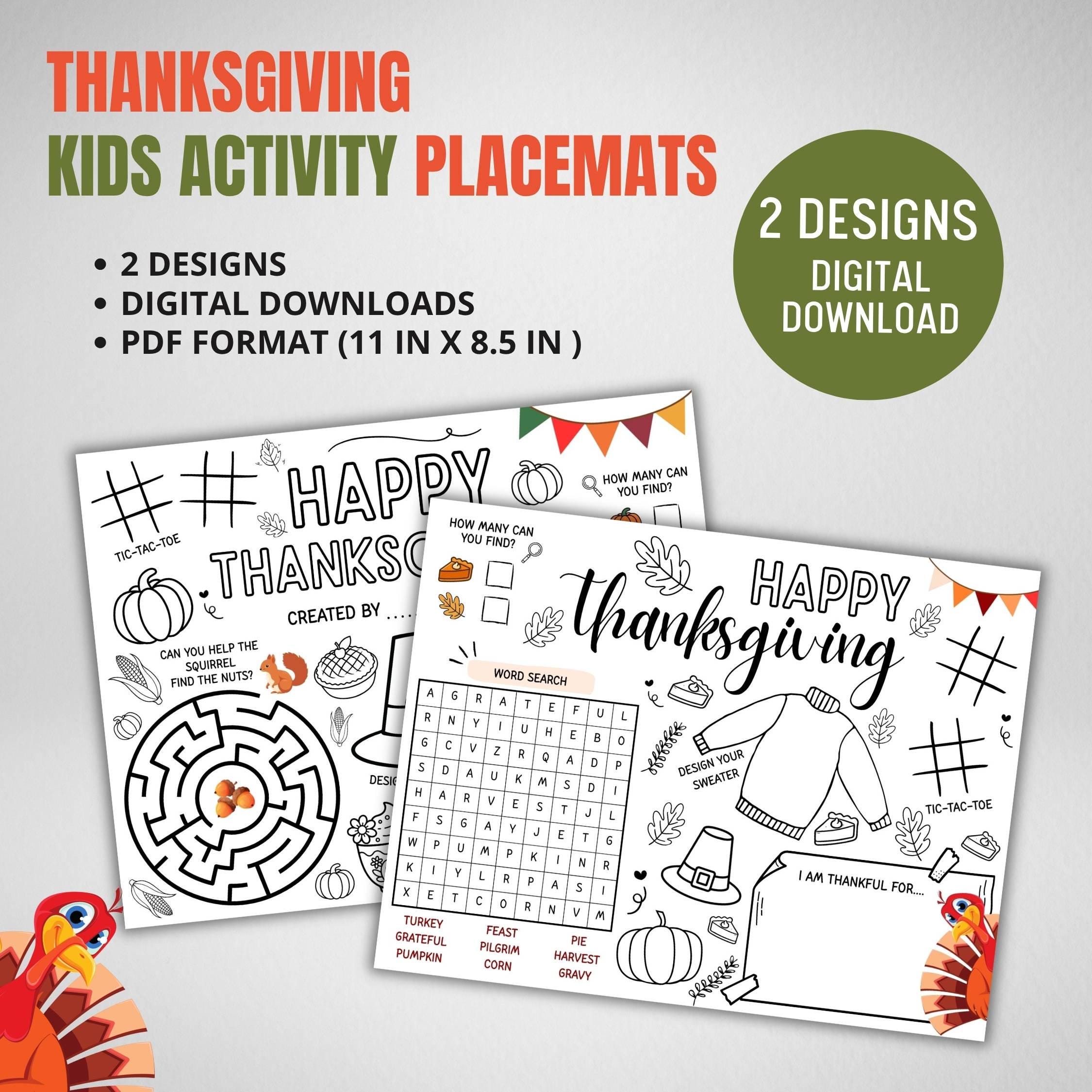 Make your Thanksgiving celebration stress-free and fun for the whole family! These activity placemats are the perfect solution for entertaining kids during the holiday feast.